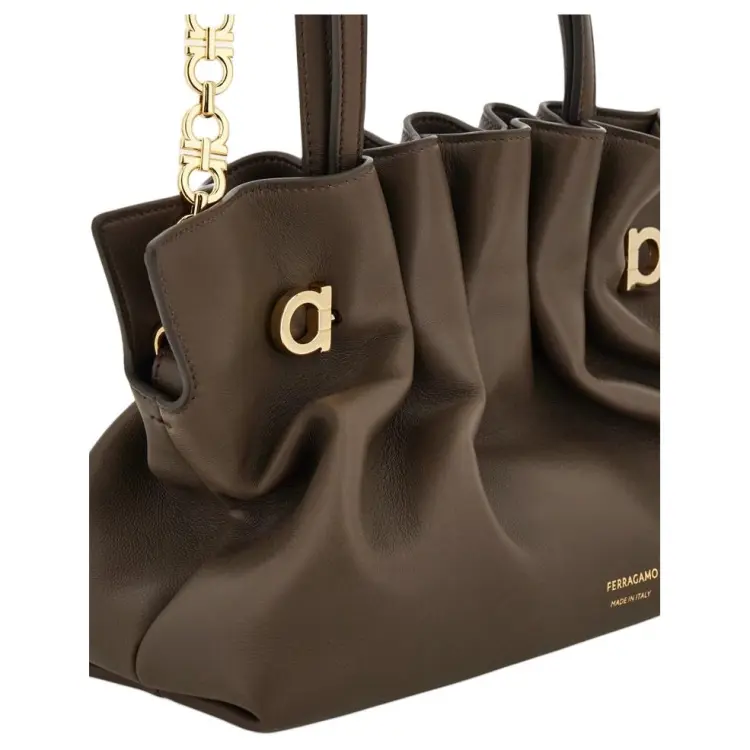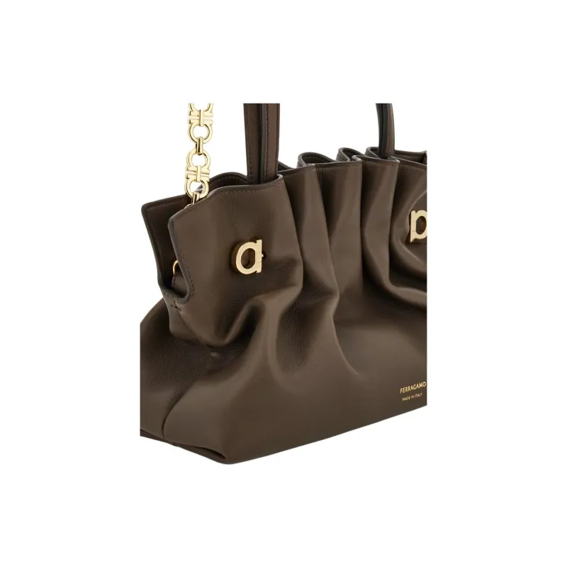 Ferragamo Lambskin Плечевая сумка Маленькая Женская Бетонно-серый