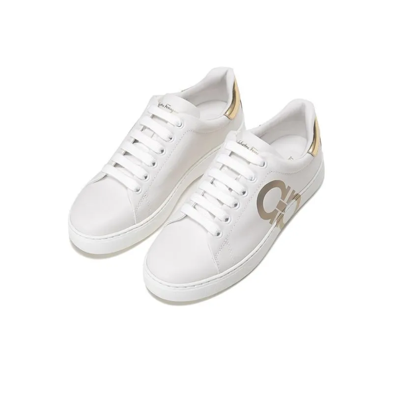 Ferragamo Низкие кроссовки для скейтбординга Женские Белые Золотые
