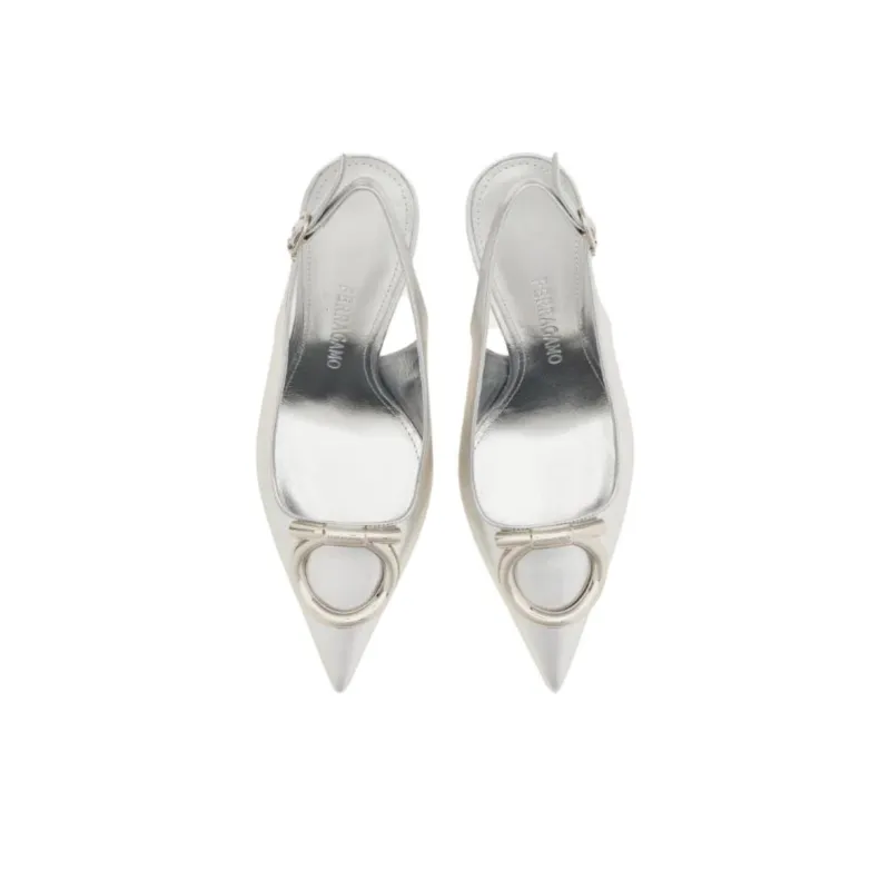 FERRAGAMO Maxi Gancini Низкий профиль Высокий каблук 9 см Женские Серебряный