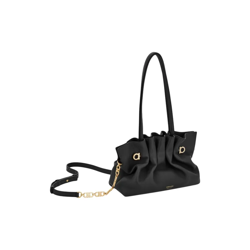 Ferragamo Напп Кожа Плечевая Сумка Маленькая Женская Черная