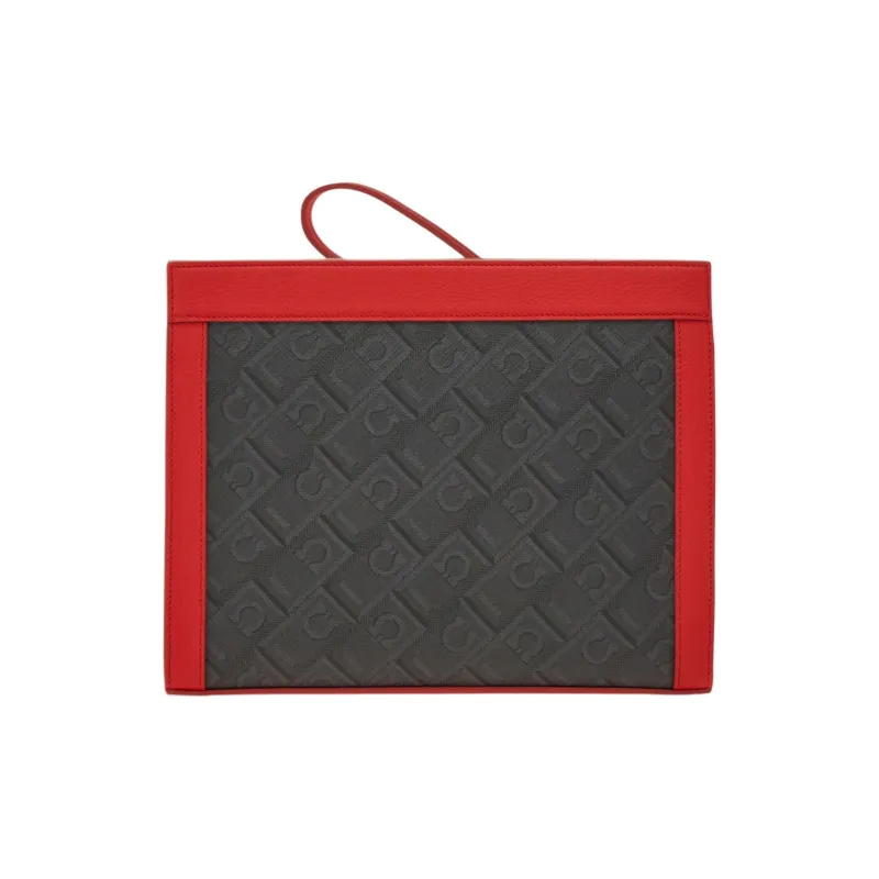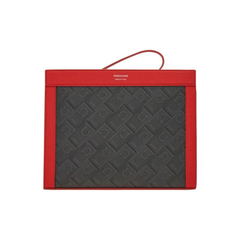 FERRAGAMO Полиуретан с коровьей кожей клатч мужской серый и огненно-красный