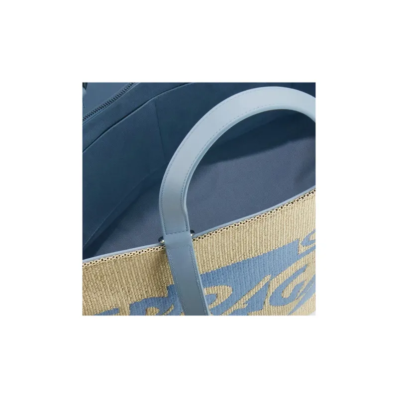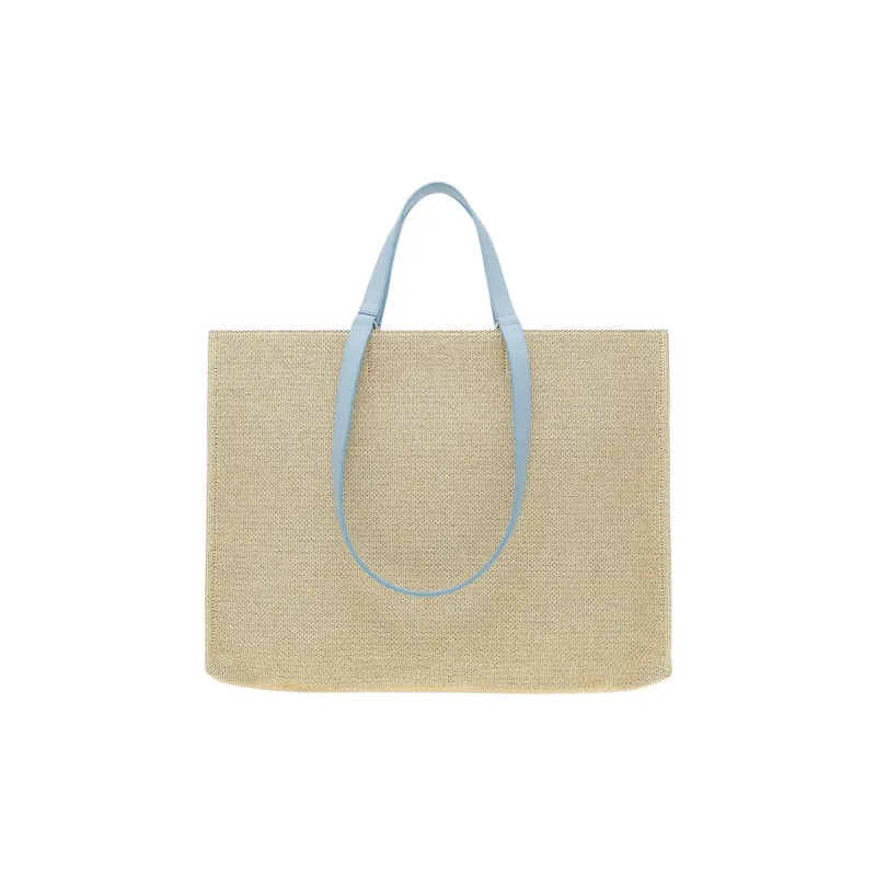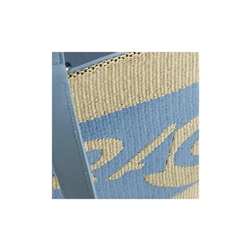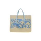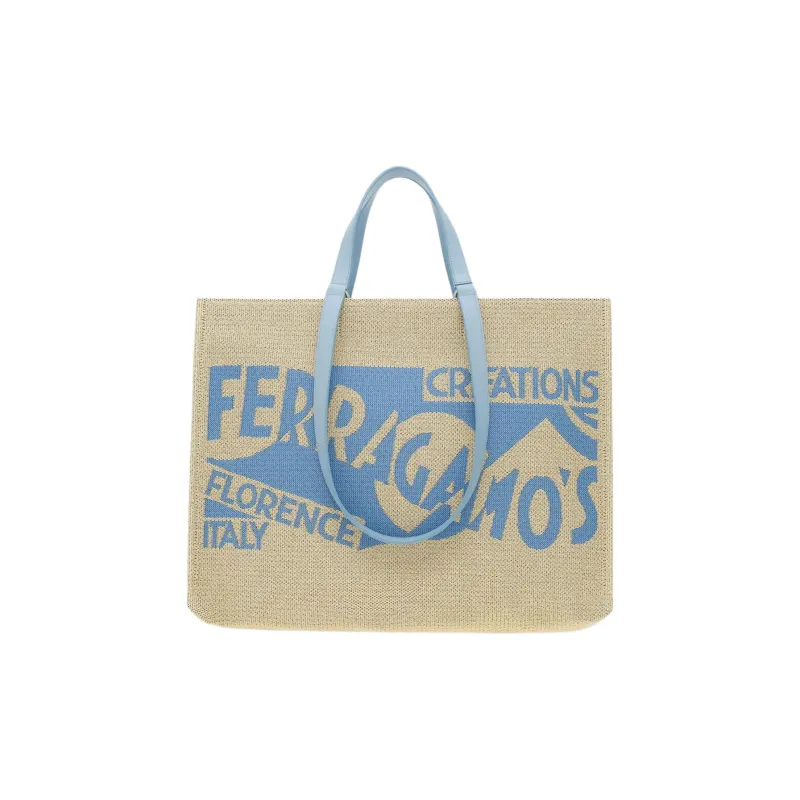 FERRAGAMO Raffia Телячья кожа Тоут Сумка Сумка для покупок Сумка Большая Женская Естественный Небесно-голубой