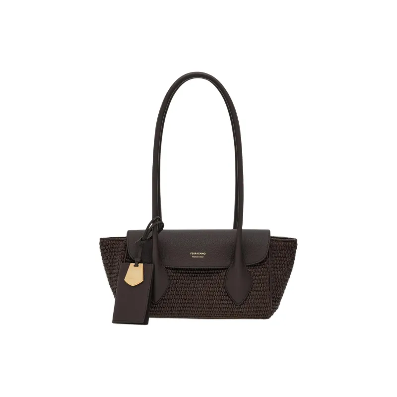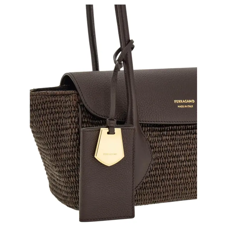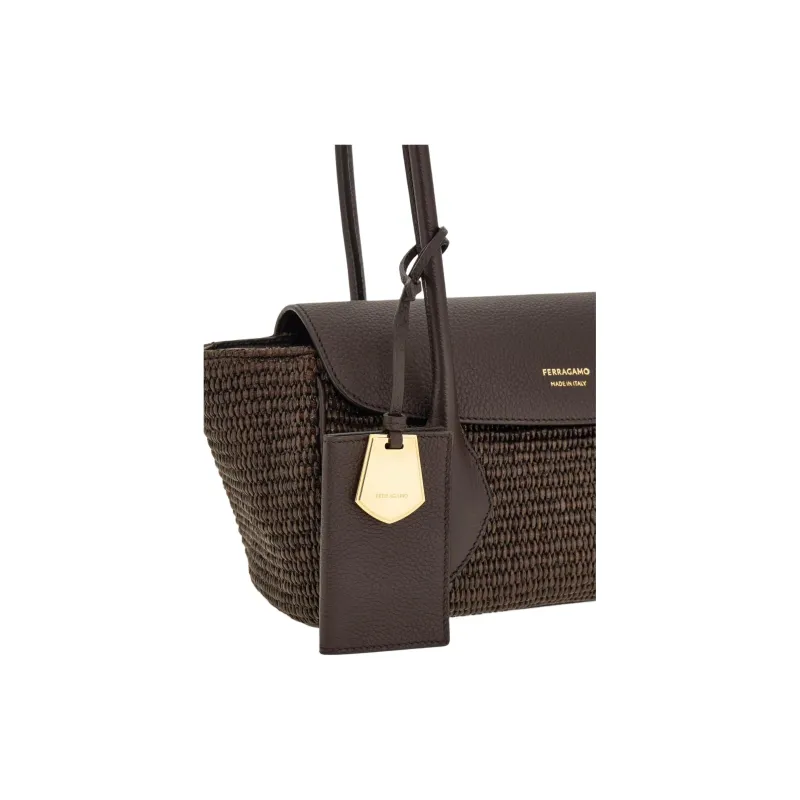 Ferragamo Рафия с коровьей кожей тоут сумка для покупок сумка сумка через плечо маленькая женская темно-коричневый
