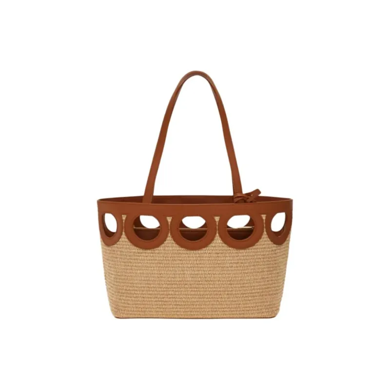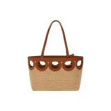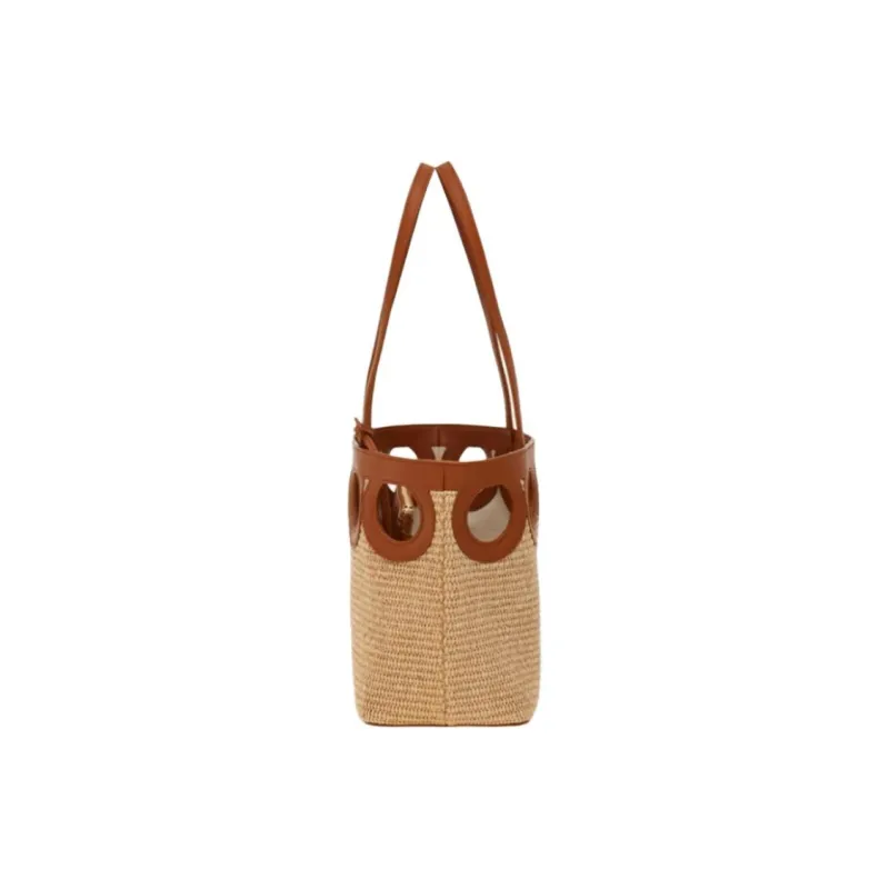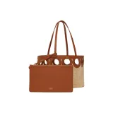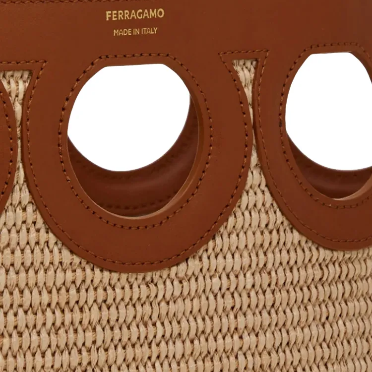 FERRAGAMO Raffia Коровья кожа Тоут Сумка Сумка для покупок Сумка через плечо Средняя Женская Натуральная и Коричневая