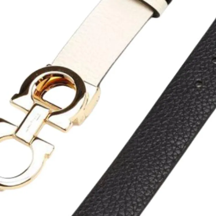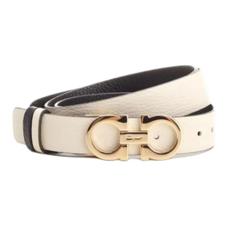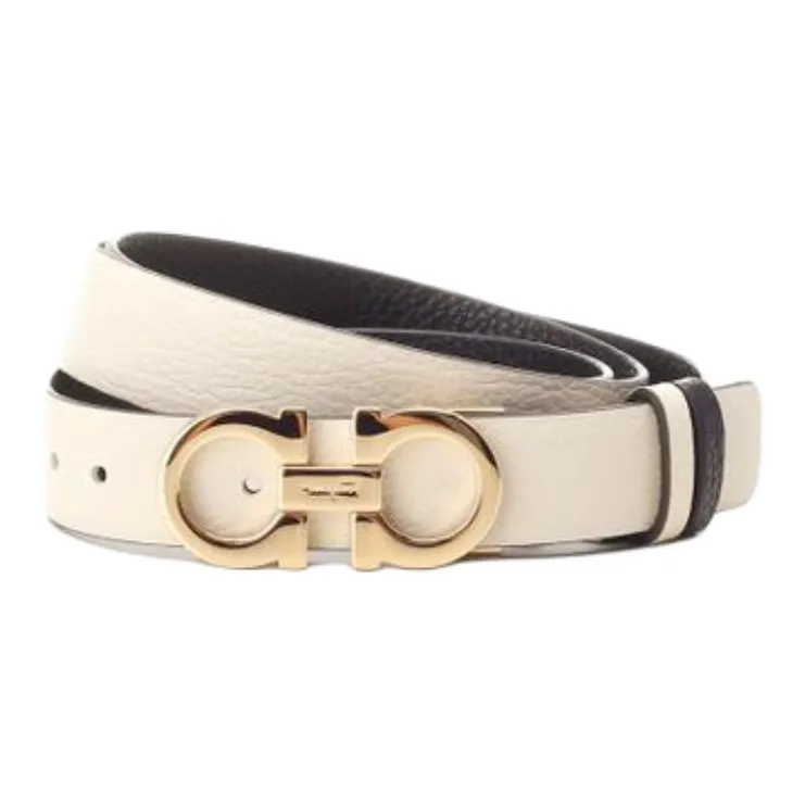 FERRAGAMO Salvatore Ferragamo Двойной Сided Дизайн Телячья кожа Кожаные ремни Женские Белые Ширина 2CM