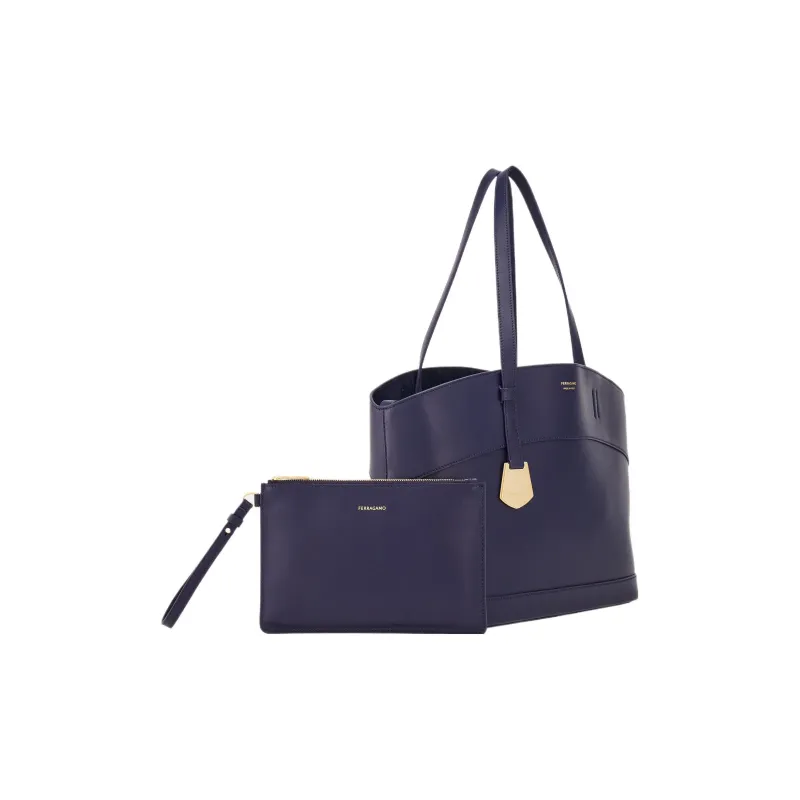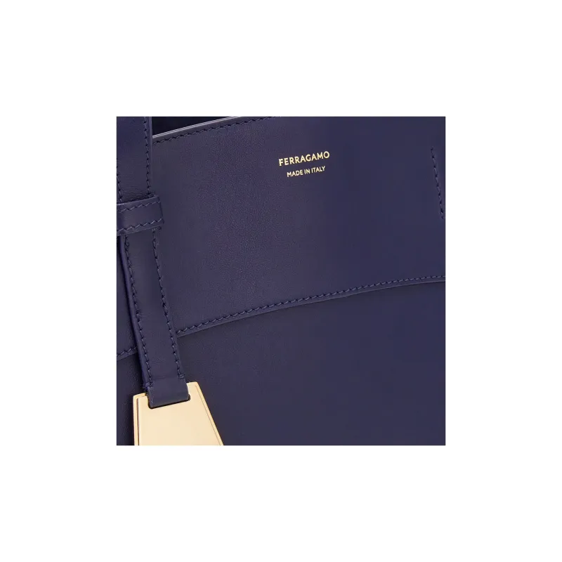 Ferragamo Smooth Calfskin Tote Bag Shopping Bag Handbag Small Women's Midnight Blue