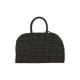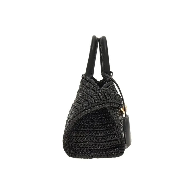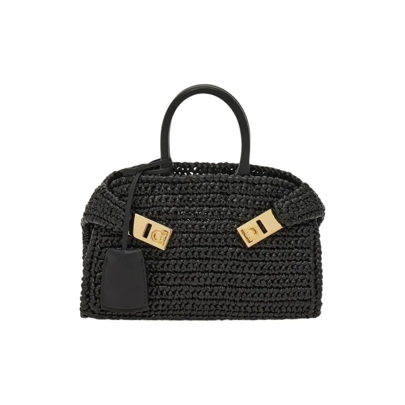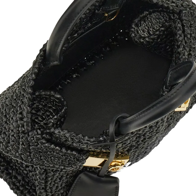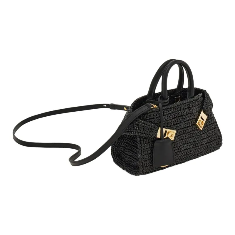 Ferragamo Телячья кожа и соломенная плетеная сумка мини женская черная