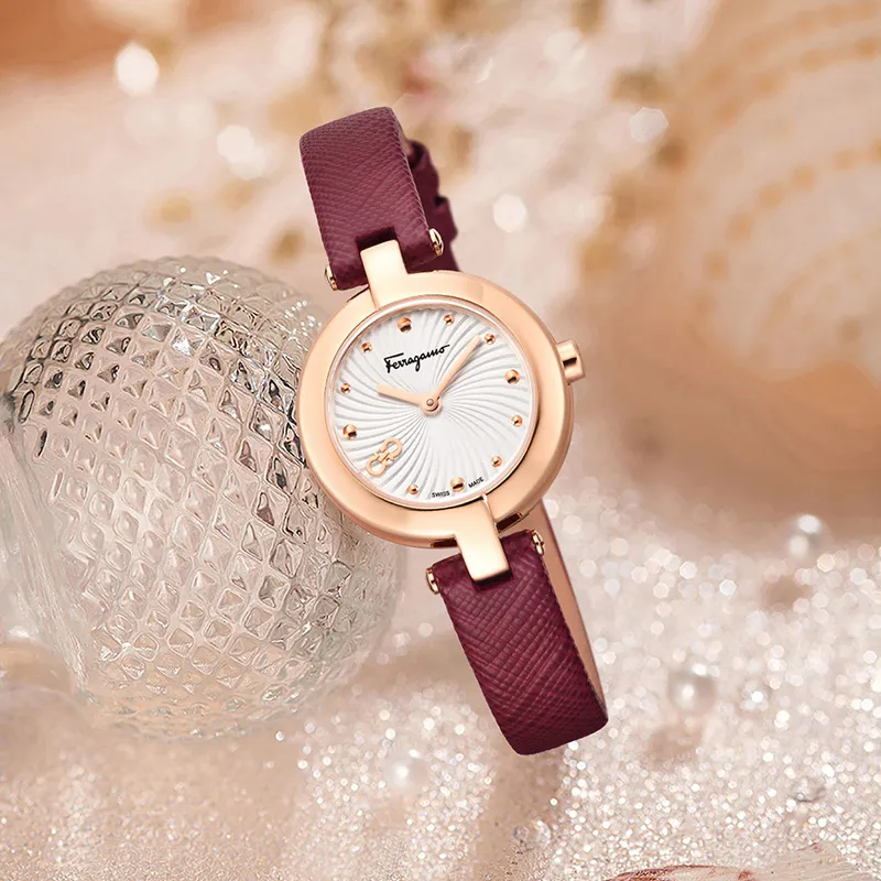 FERRAGAMO The Little Mermaid Sunset Dancer Женские часы Кварцевый механизм Ремешок из коровьей кожи Белый циферблат