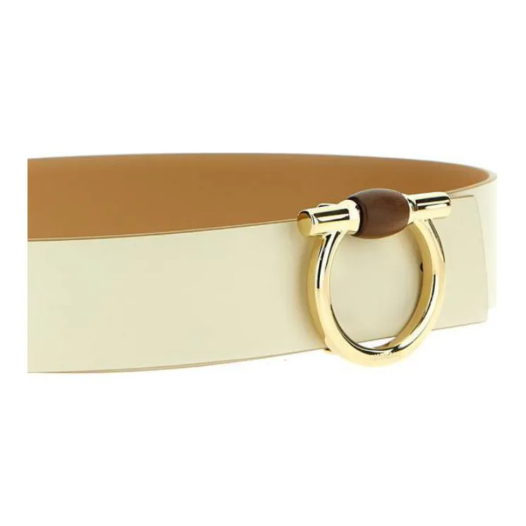 Ferragamo Два Тон Дизайн Телячья кожа Кожаные ремни Женские Желтый Ширина 5CM