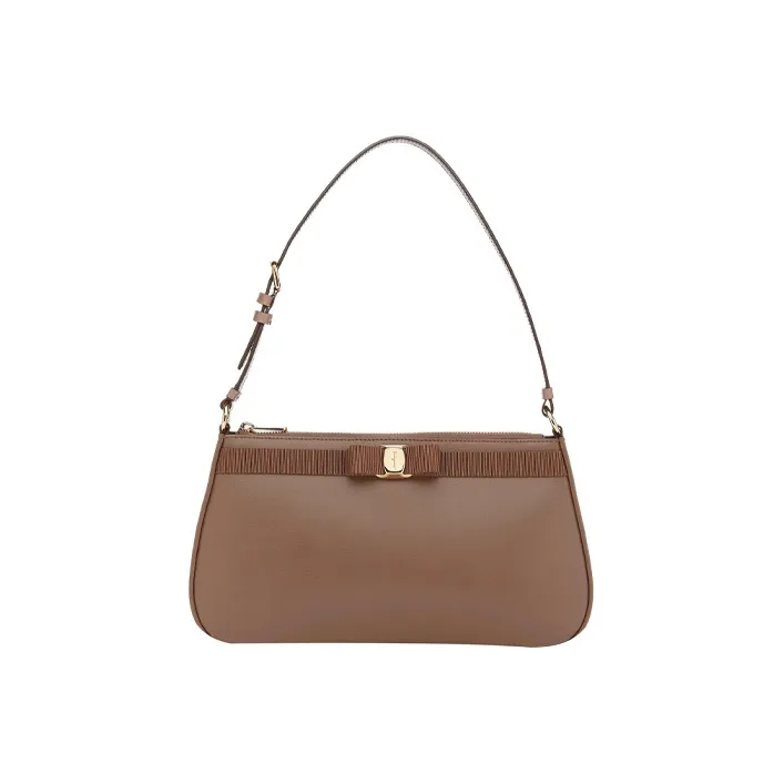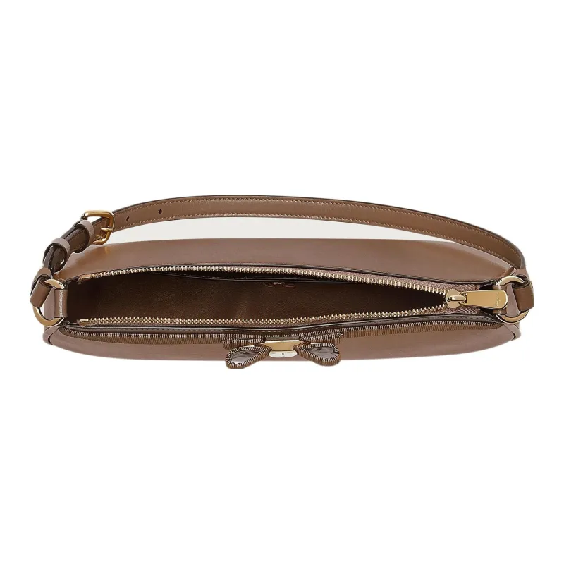 FERRAGAMO Vara Телячья кожа Плечевая сумка Женская Коричневая