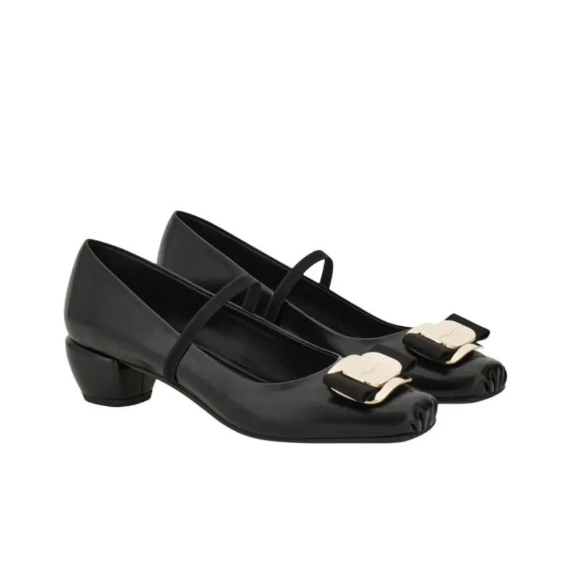 FERRAGAMO Vara Грубый каблук Туфли Мэри Джейн 4CM Женские Черный