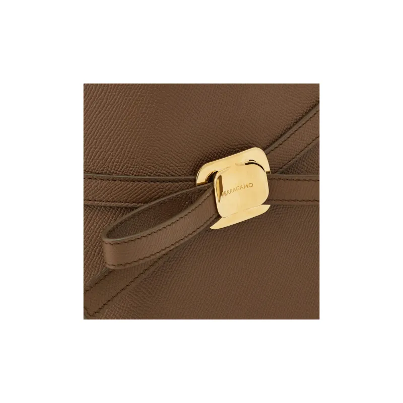 FERRAGAMO Vara Коровья кожа Тоут Сумка Сумка для покупок Сумка среднего размера Женская Темно-коричневая