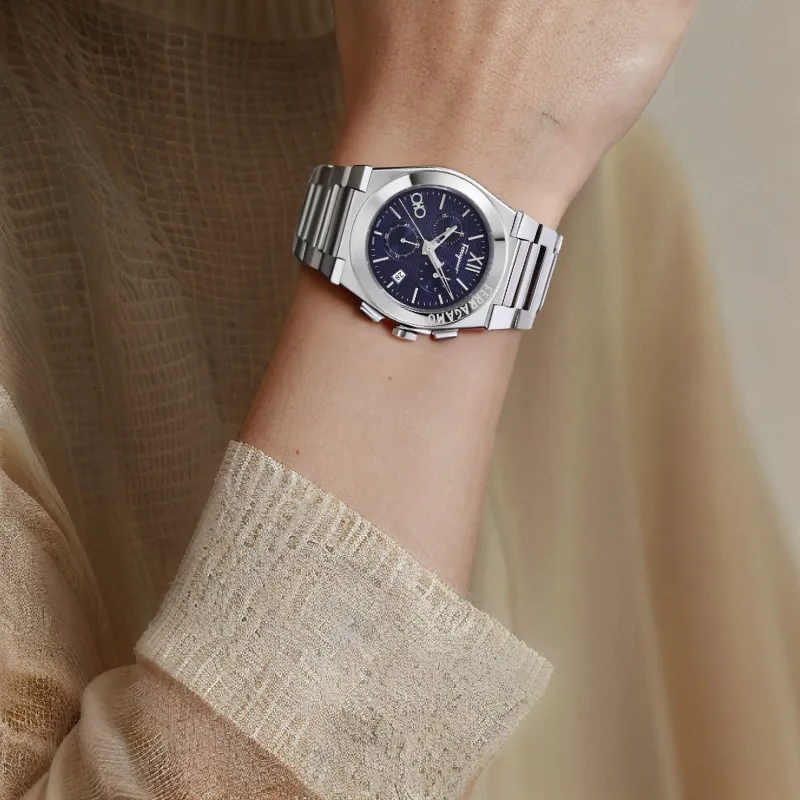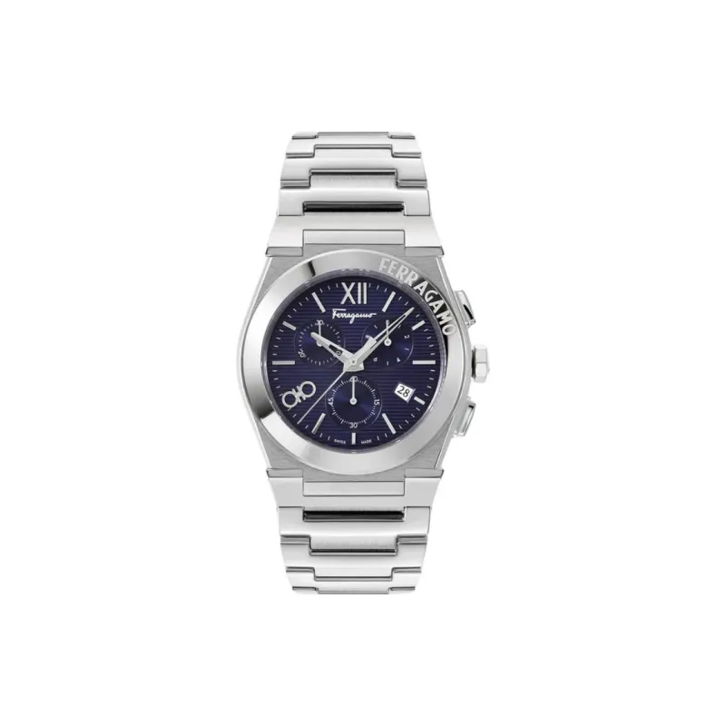 FERRAGAMO Мужские часы Кварцевый механизм Ремешок из нержавеющей стали 42 мм Синий циферблат