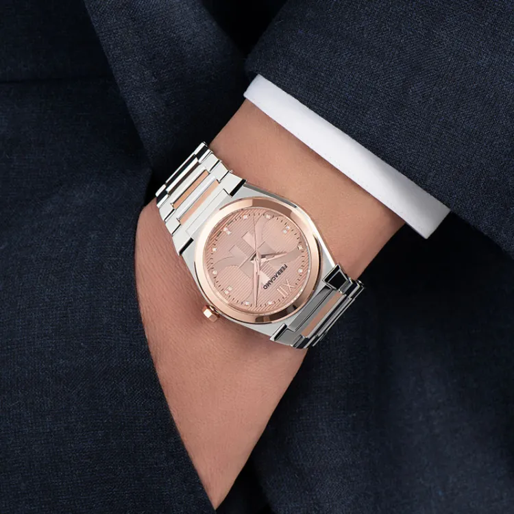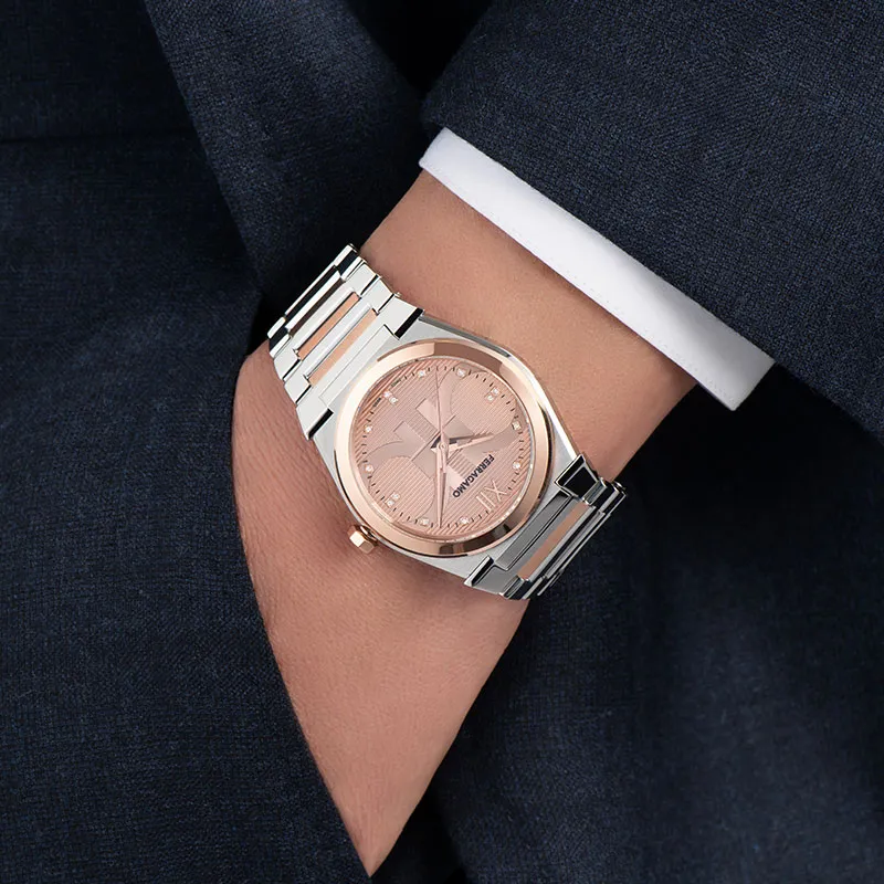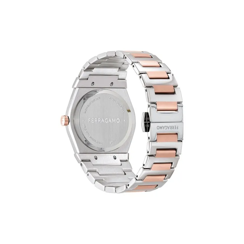 FERRAGAMO Наручные часы Кварцевый механизм Металлический ремешок 36 Розовое золото Циферблат Часы Мужские часы