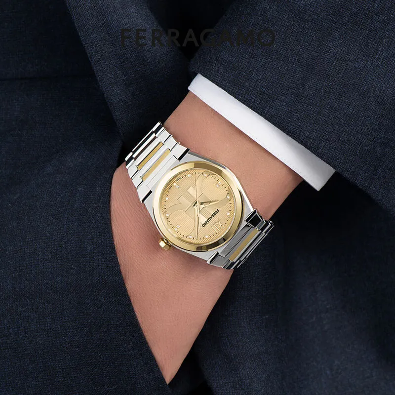 Ferragamo Кварцевые часы механизм ремешок из нержавеющей стали 40 мм 28 мм розовый циферблат унисекс