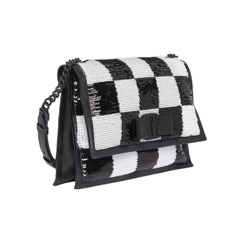 FERRAGAMO Viva Ткань Сумка через плечо Сумка на плечо Женская Черная Белая