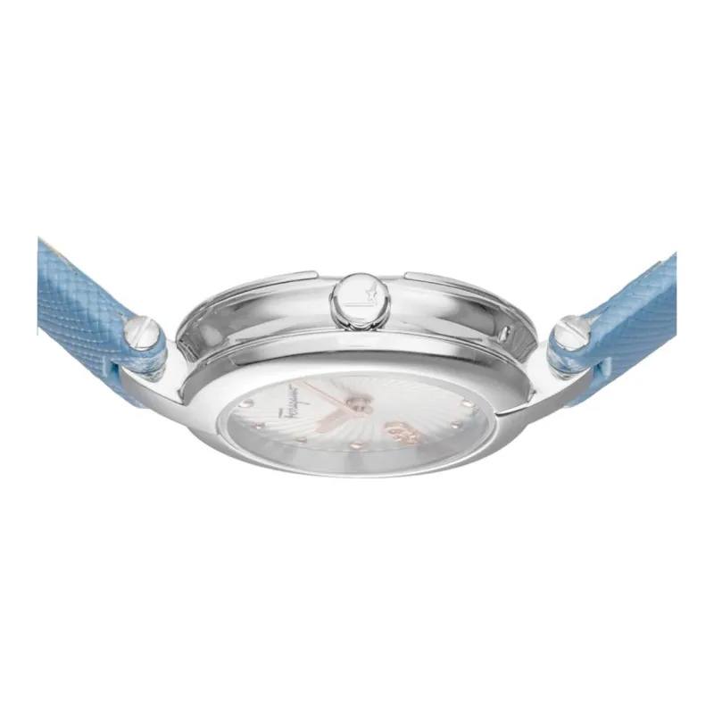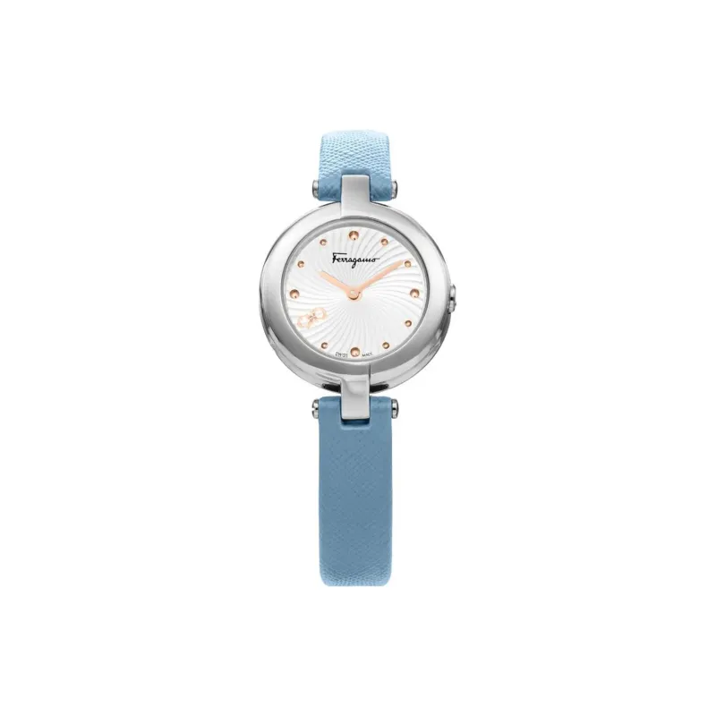 Ferragamo Женские часы Кварцевый механизм Коровья кожа Ремешок 26,5 мм Серебристый циферблат