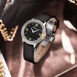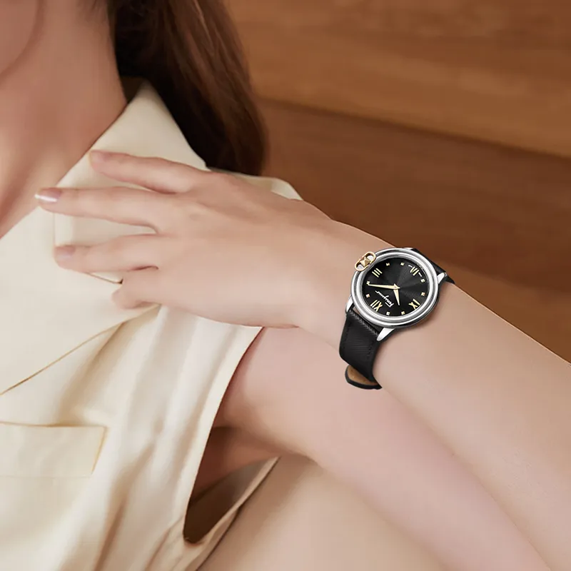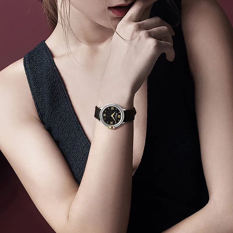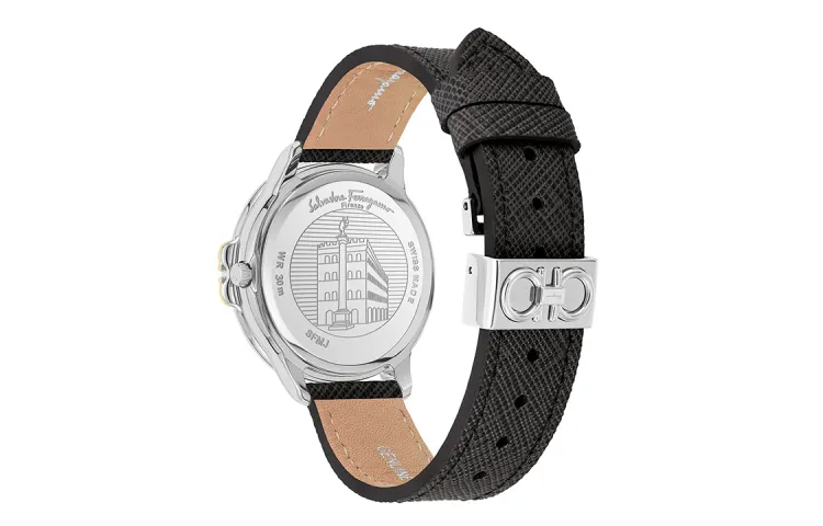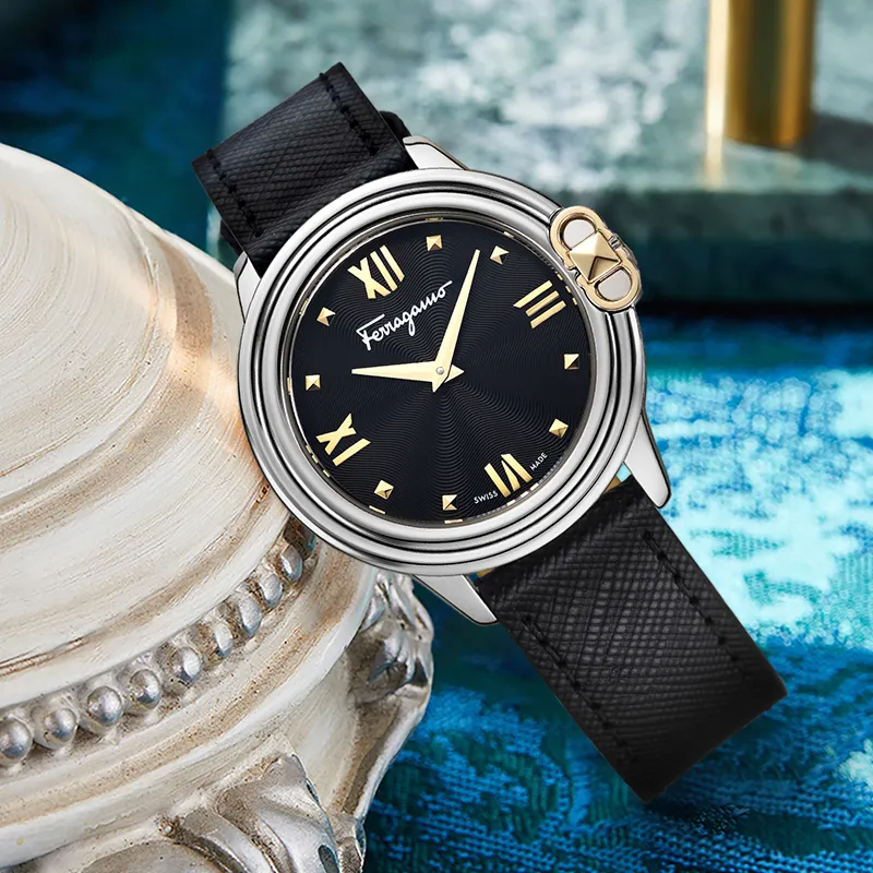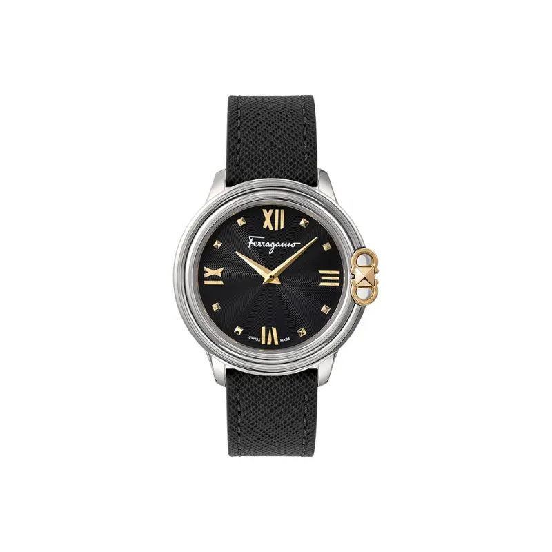 Ferragamo Женские часы Кварцевый механизм Естественная кожа Ремешок 34 мм Черный циферблат SFMJ00122