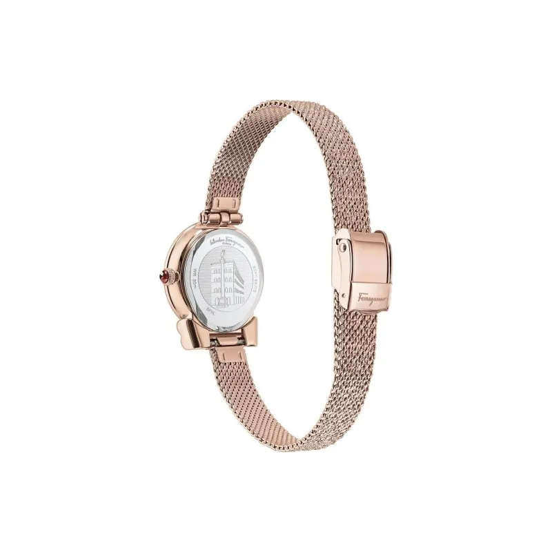 FERRAGAMO Женские часы Кварцевый механизм IP Золото 5N Ремешок 22 мм Черный циферблат