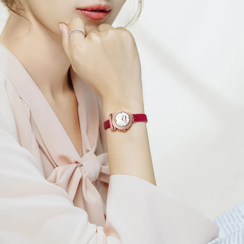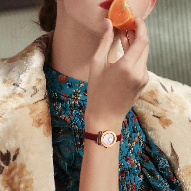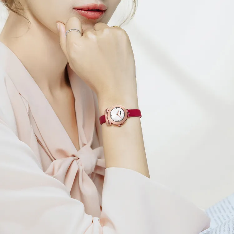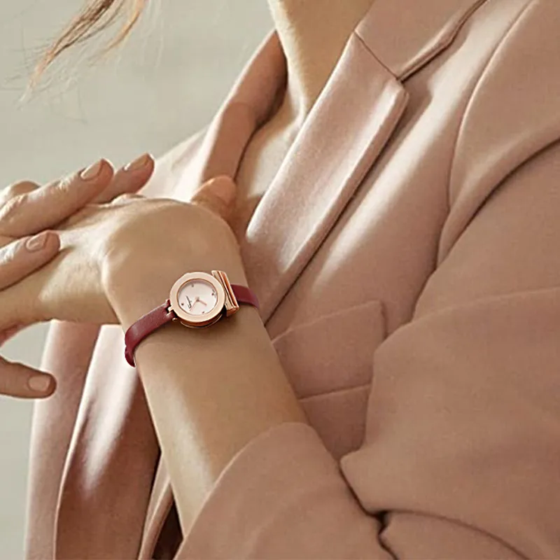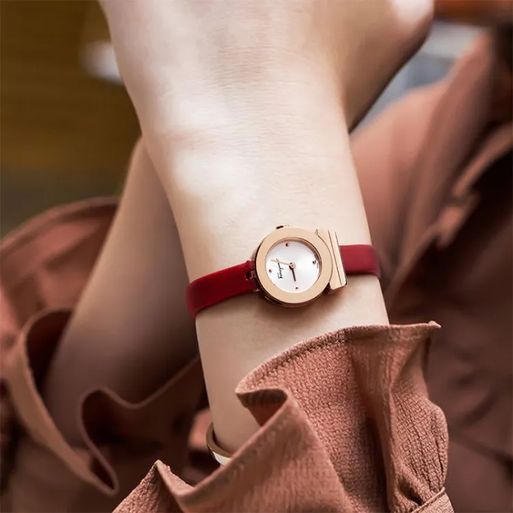 Ferragamo Женские часы Кварцевый механизм Коровья кожа Ремешок 22 мм Жемчужная раковина Циферблат Цветные часы