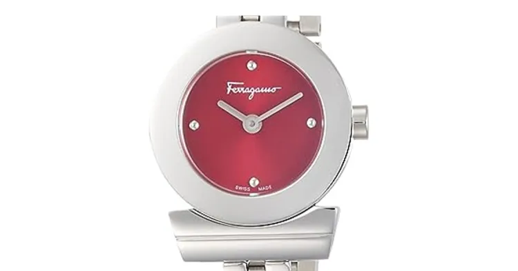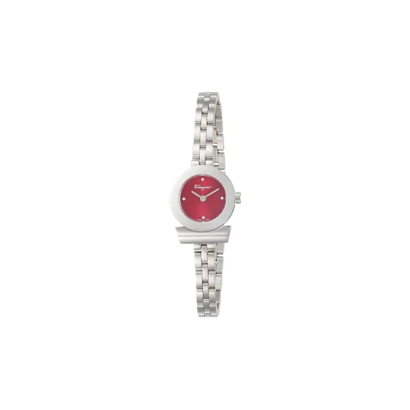 Ferragamo Женские часы Кварцевый механизм Ремешок из нержавеющей стали 22 5 мм Красный циферблат Часы FBF060017