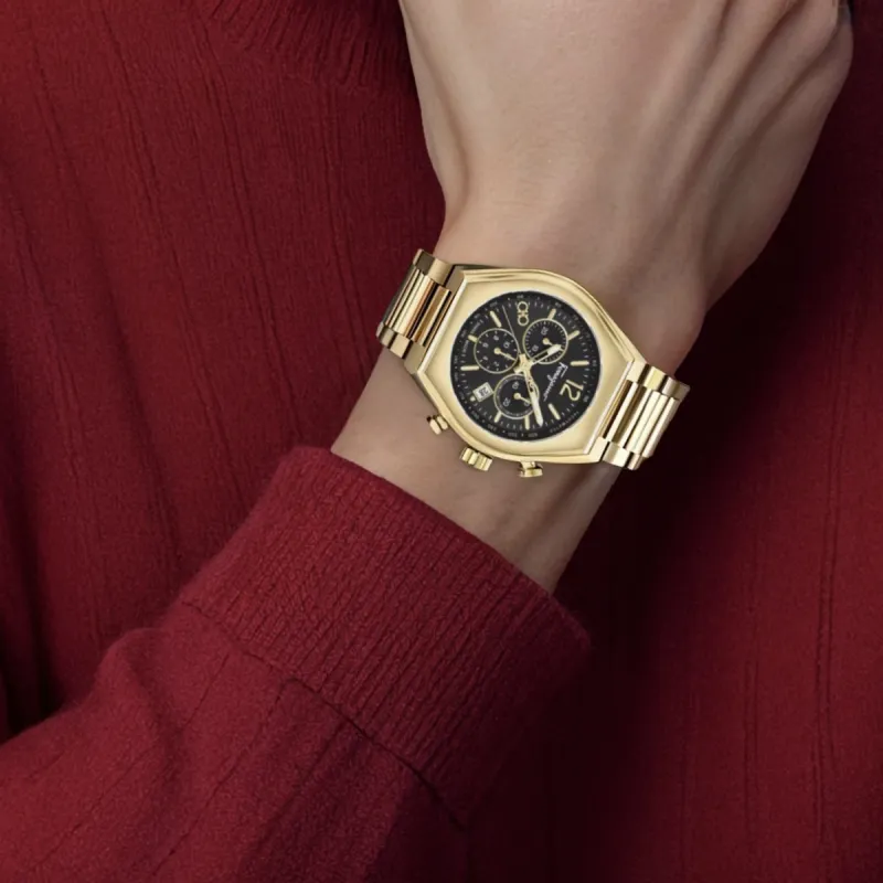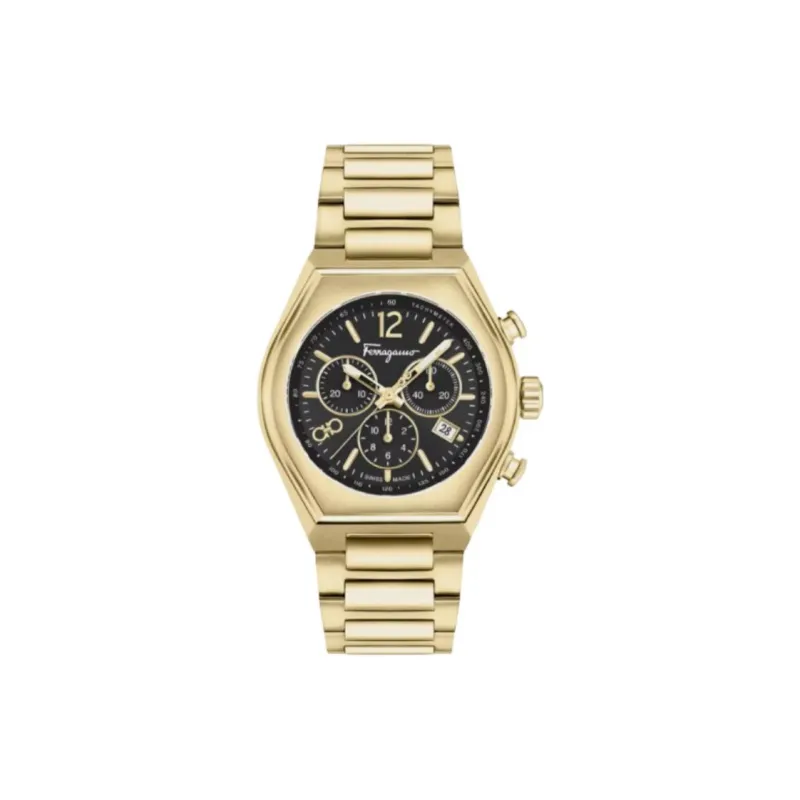 FERRAGAMO Мужские часы Кварцевый механизм Ремешок из нержавеющей стали 42 мм Черный циферблат