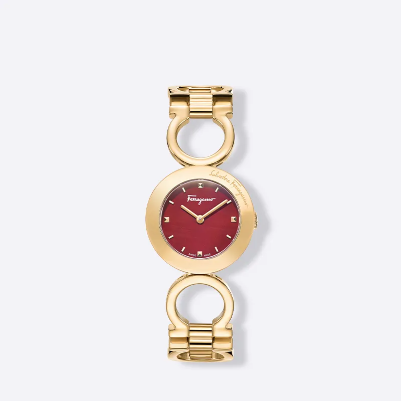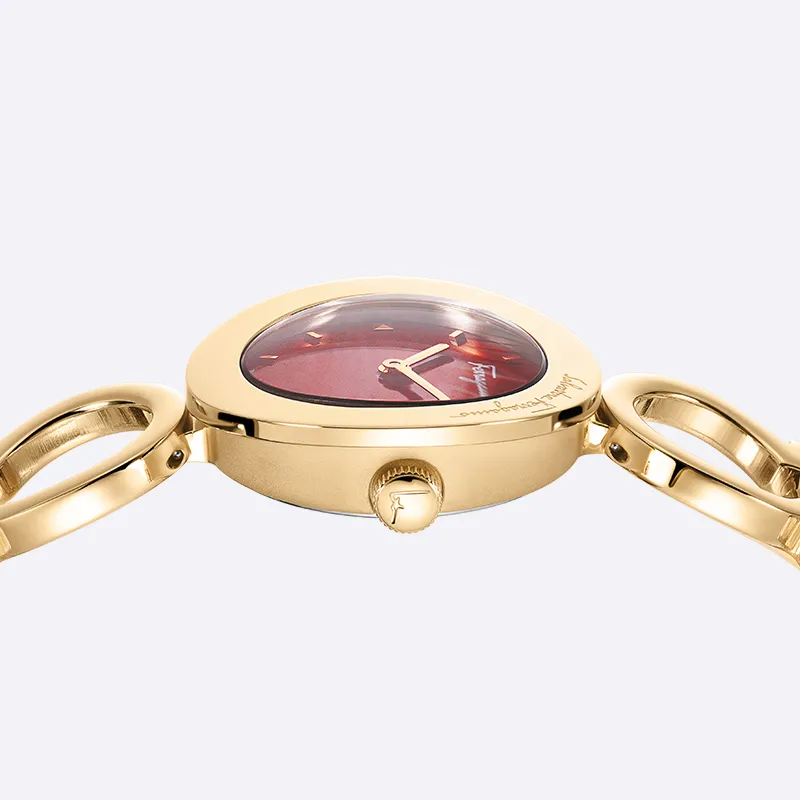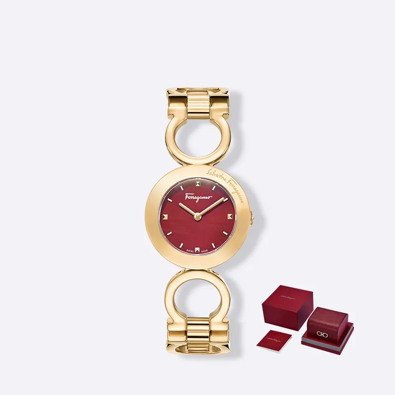 Ferragamo Женские часы Кварцевый механизм Ремешок из нержавеющей стали 28 мм Красный циферблат