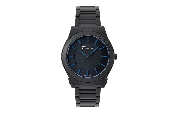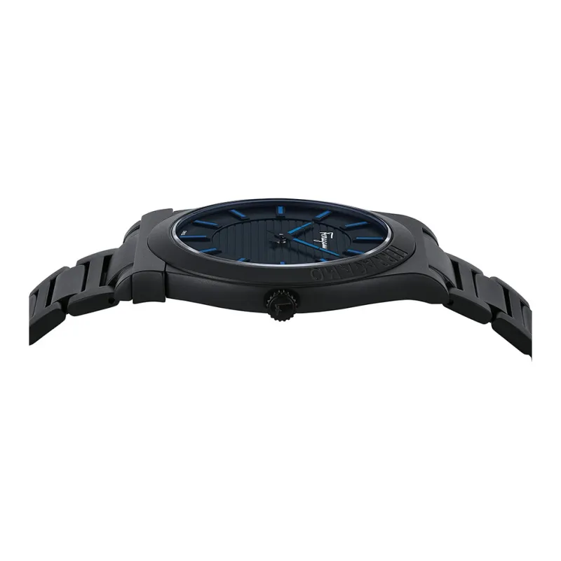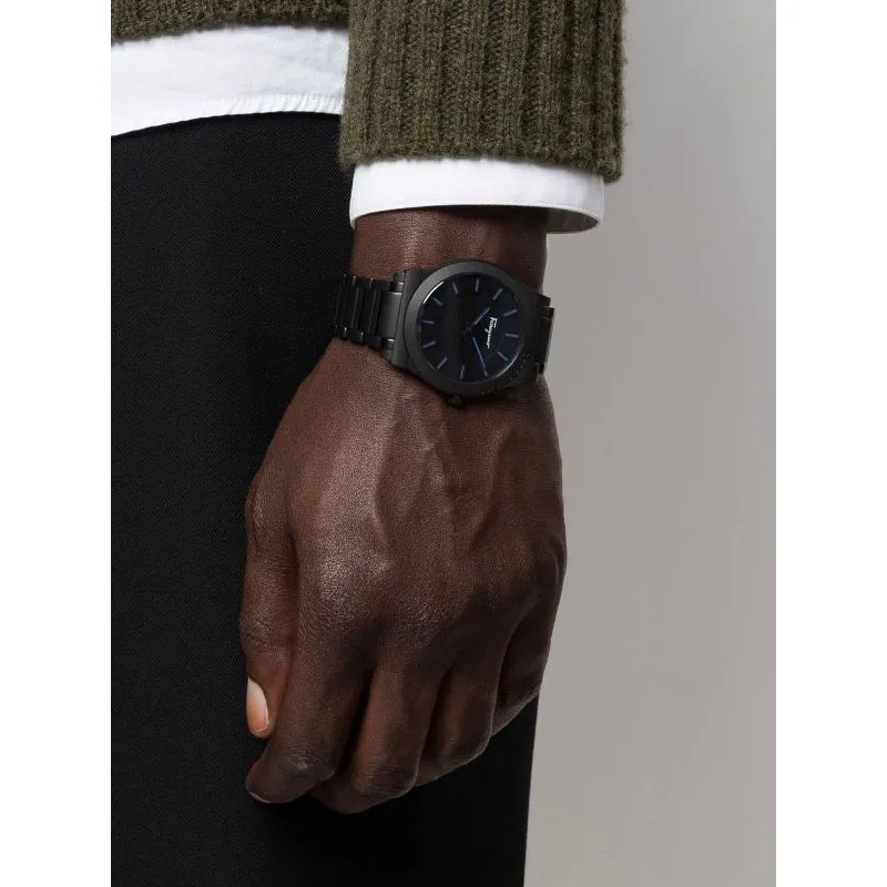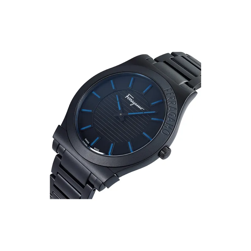 Ferragamo Мужские часы Кварцевый механизм Ремешок из нержавеющей стали 41 мм Черный циферблат