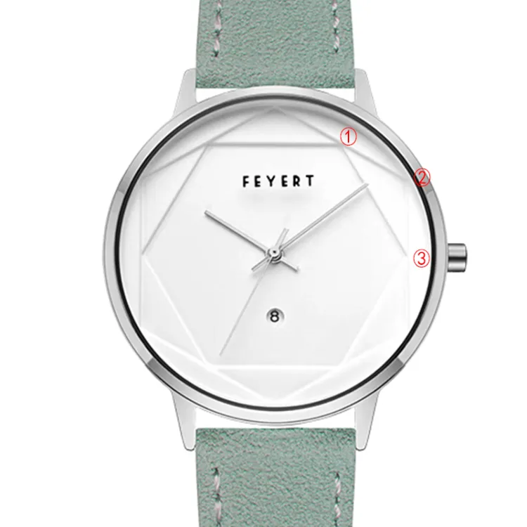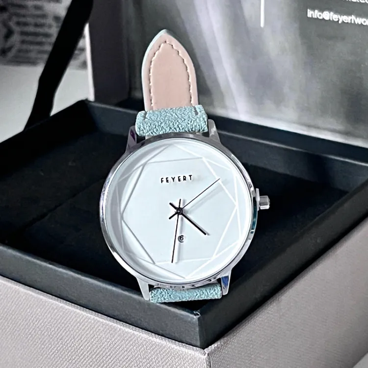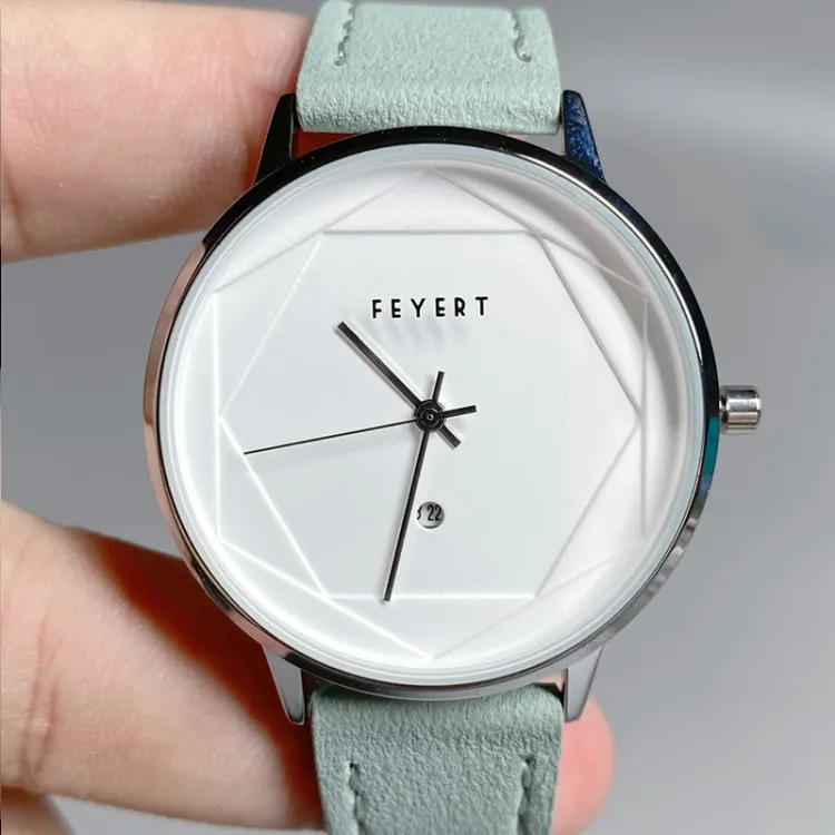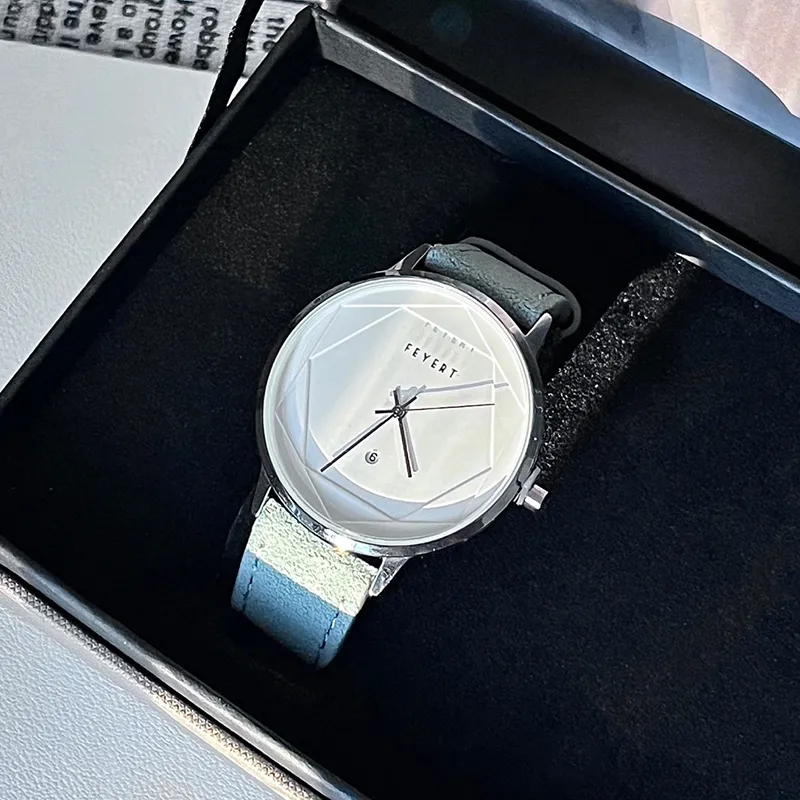 FEYERT Fayette Hexagon Star Collection Кварцевый механизм Естественная кожа Ремешок Часы Унисекс Белый циферблат