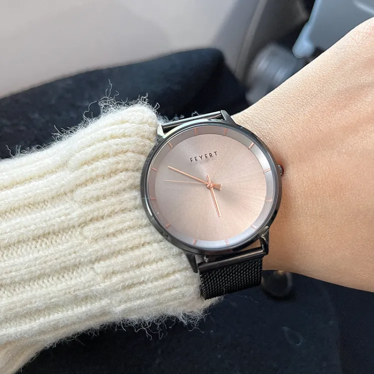 Серый циферблат, черный корпус + розовое золото [браслет, одежда, наборы]