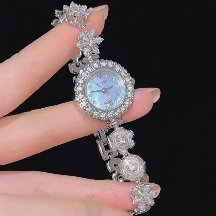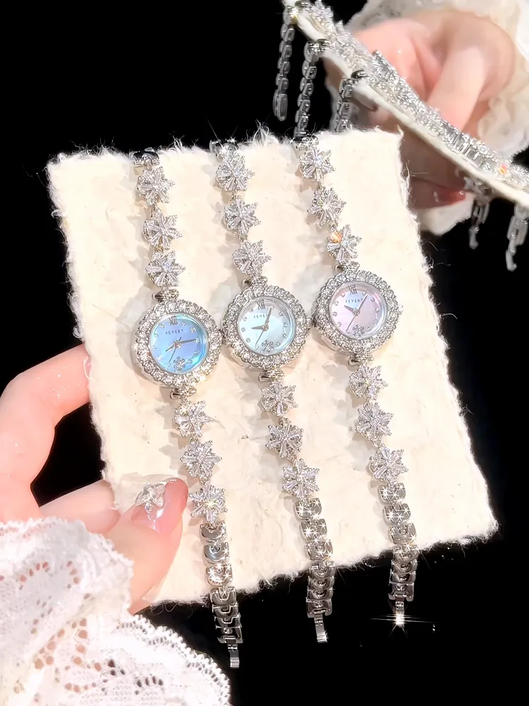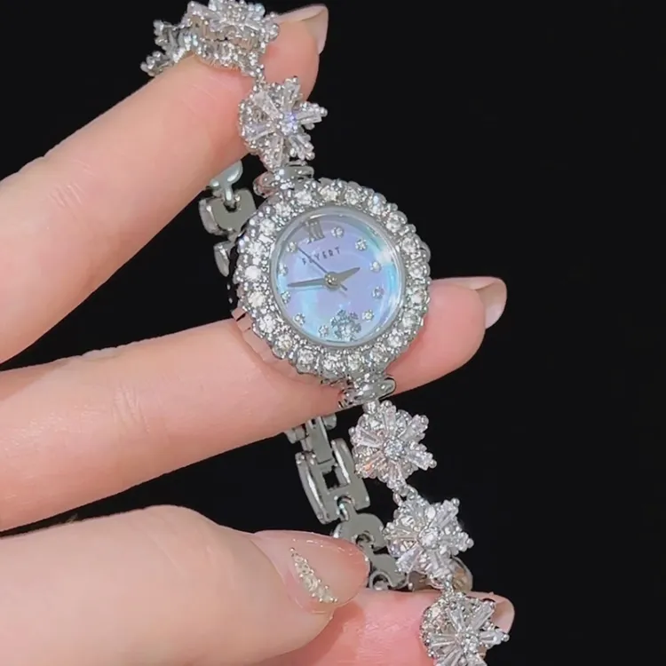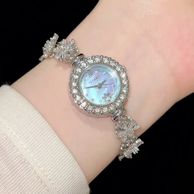 FEYERT Снежинка Кварцевый механизм Eco Friendly Медный Ремешок Часы Женские Жемчужная раковина Циферблат