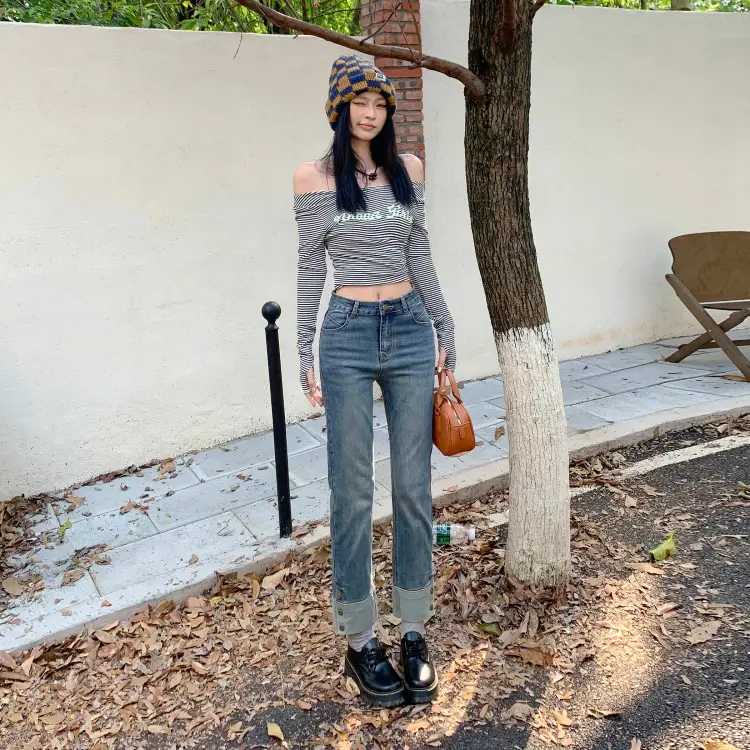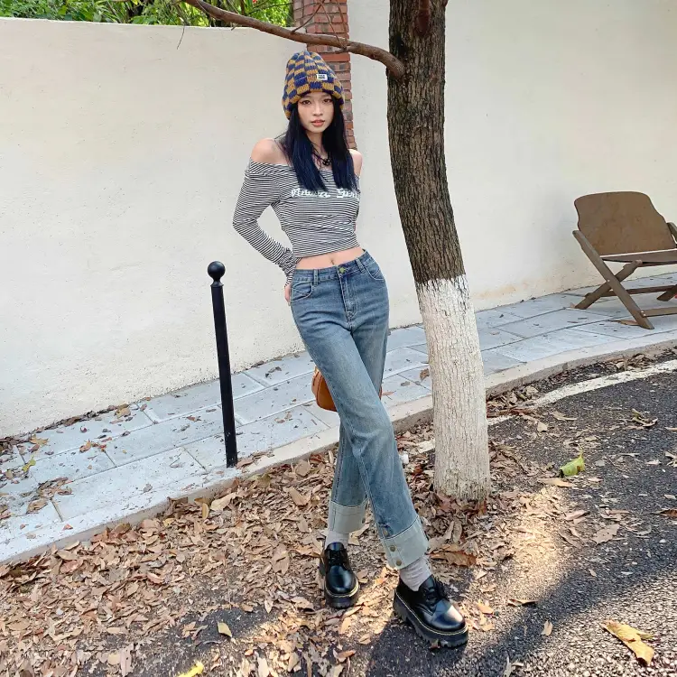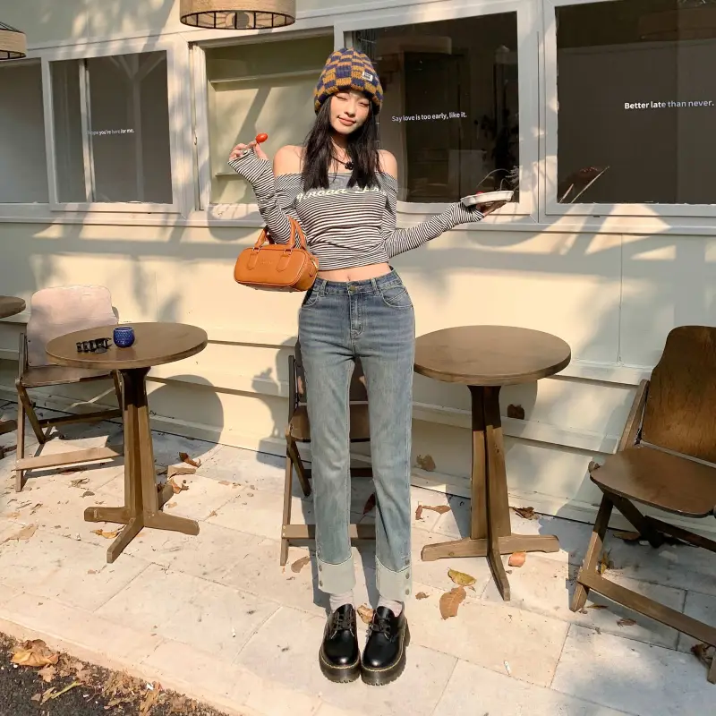 FHMY Джинсы Женские Ностальгический Синий