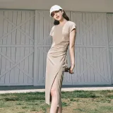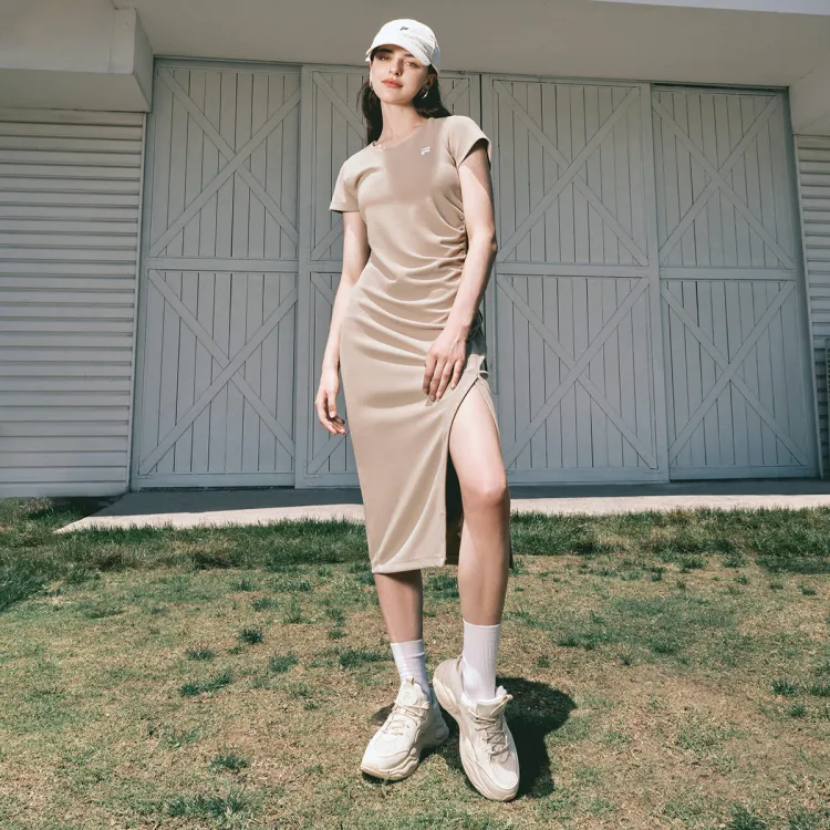 FILA FUSION Короткий рукав Платье Женское Серый Коричневый Хаки