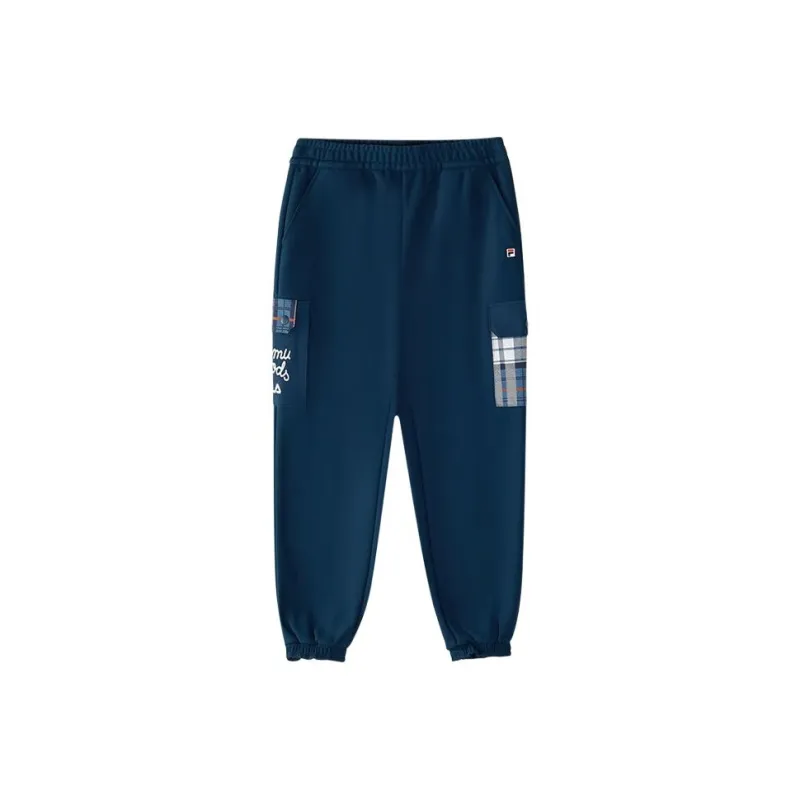 FILA KIDS x YUANTIANZHI LIANMINGKUAN FW24 Вязаные тренировочные брюки Sea Вечерний синий цвет Подростки