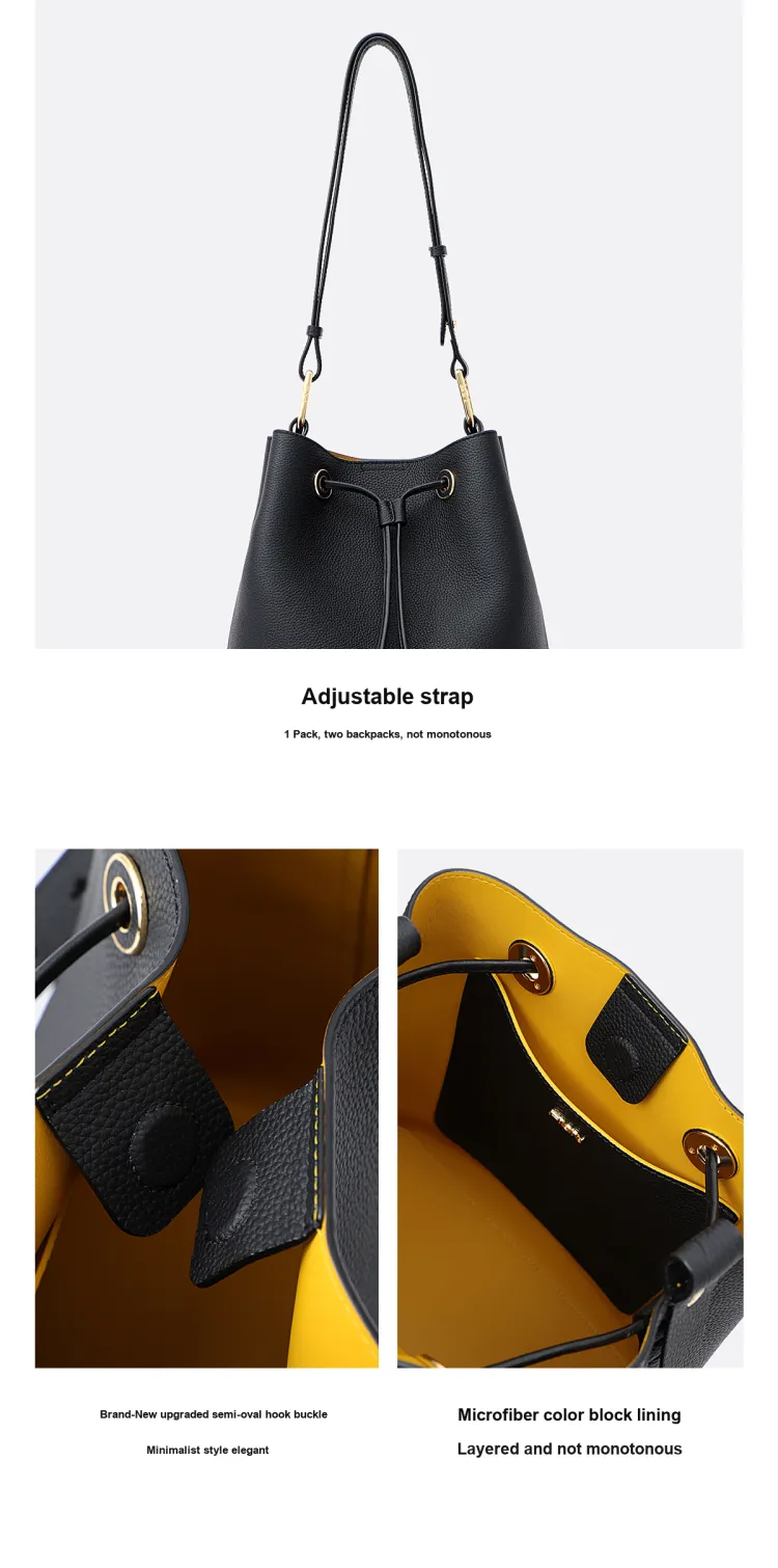 FION Корова Кожа Ведрообразные Сумки Сумки через плечо Сумка на плечо Женская Хаки Абрикос Коричневый Рис Белый Классический Черный