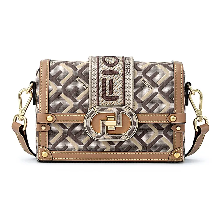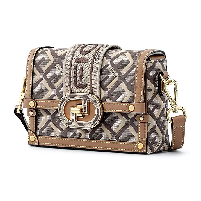 FION Ткань Маленькая Квадратная Сумка Сумка через плечо Женская Кофейная