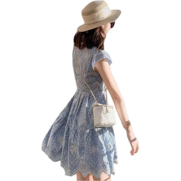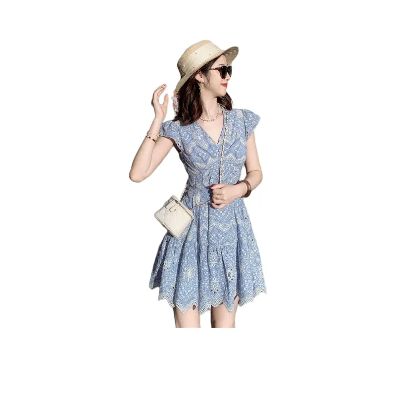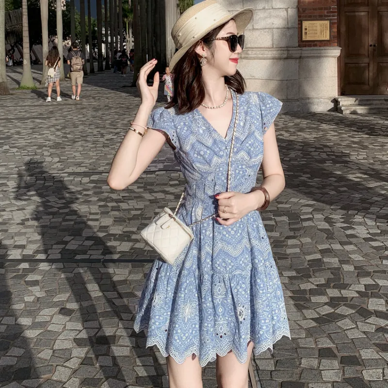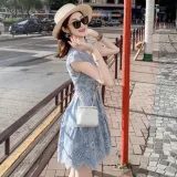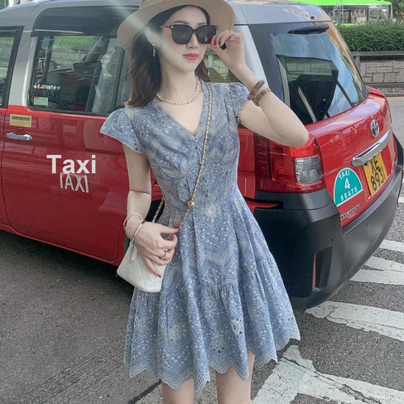 Fish Rabbits Короткий рукав Платье Женское Синий