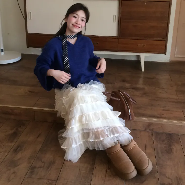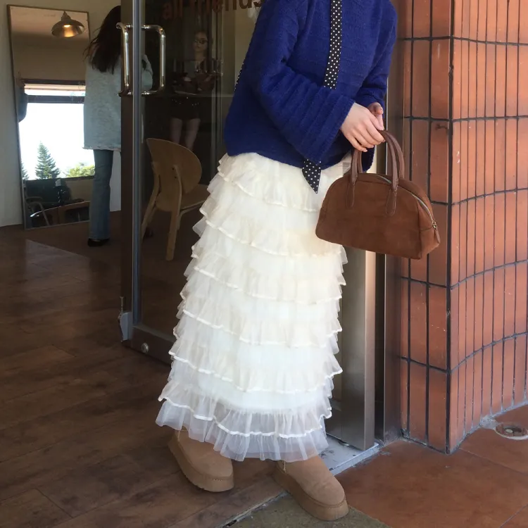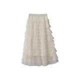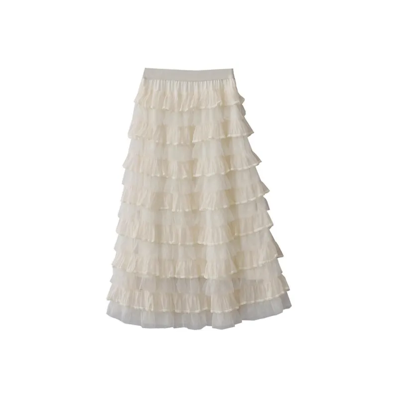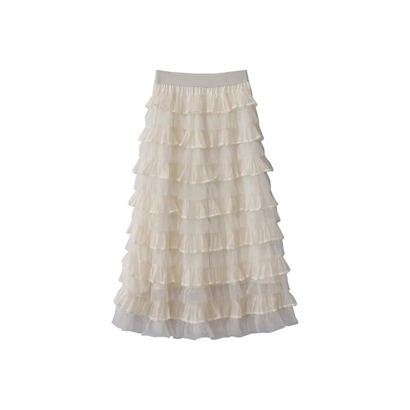 FLIM Повседневный Длинный Юбка Женская Бежевая Абрикосовая