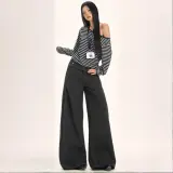 FLIM The Цвет OF The Модель'S Одежда IS Черно-белые полосы Женские Повседневные брюки