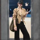 Цвет:Цвет одежды модели относится к естественному цвету. Пальто хаки