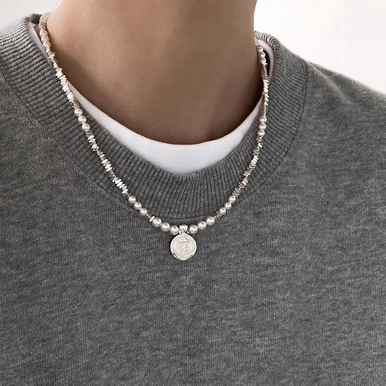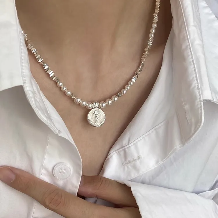 Стиль:Нерегулярный серебряный самородок, жемчужная цепочка на ключицу