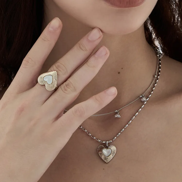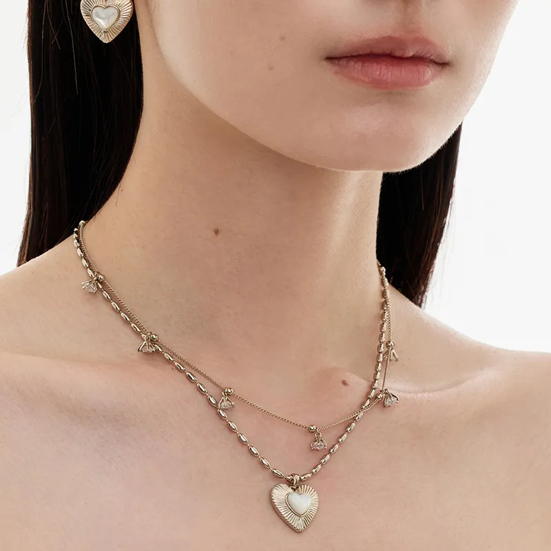 Стиль:Двухслойное ожерелье в форме сердца с жемчужиной
