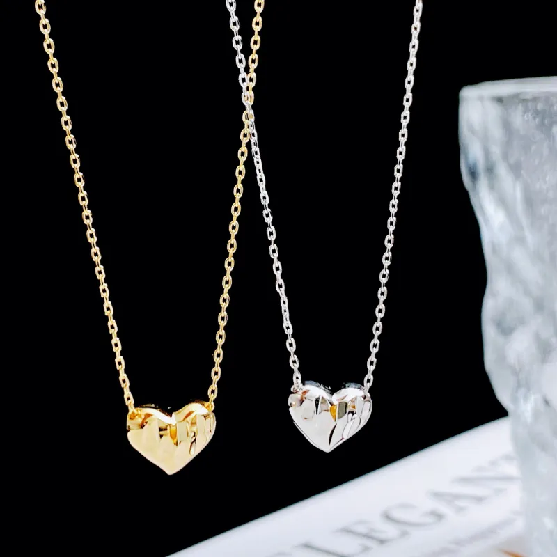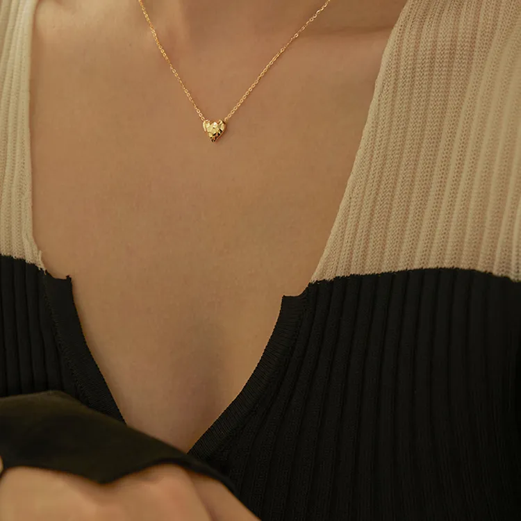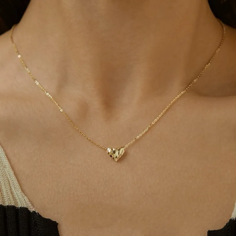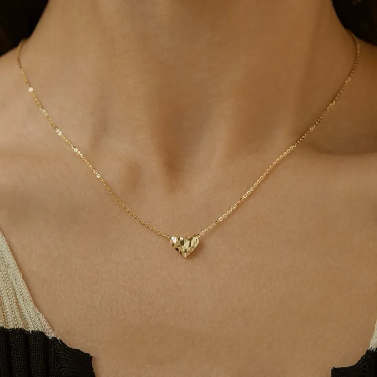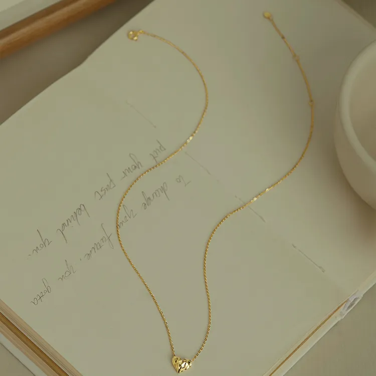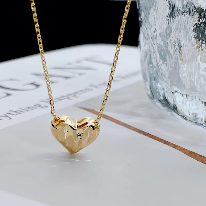 Стиль:Простой текстурированный ожерелье в форме сердца - золото