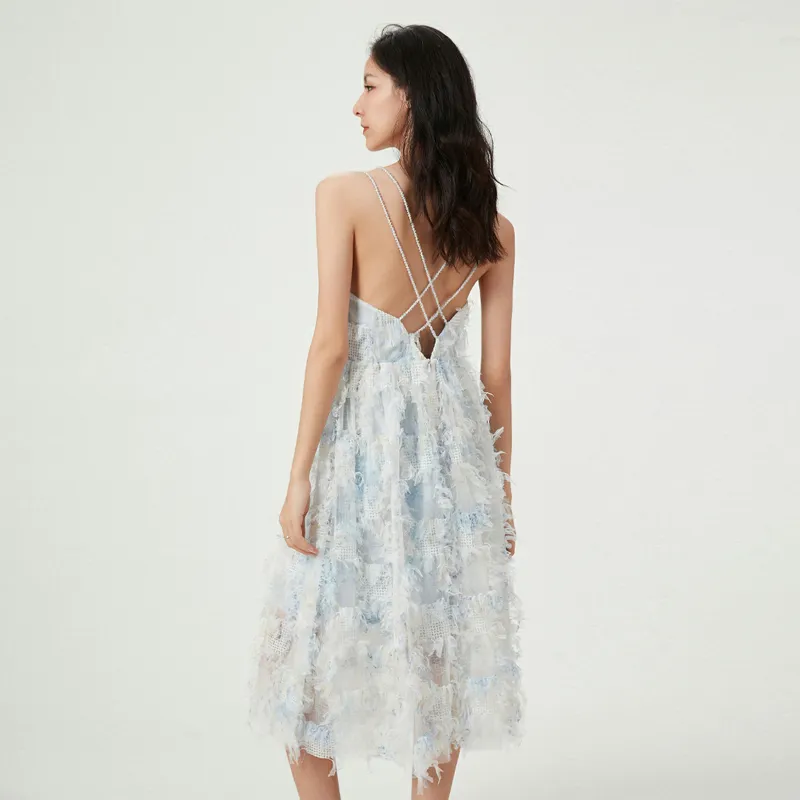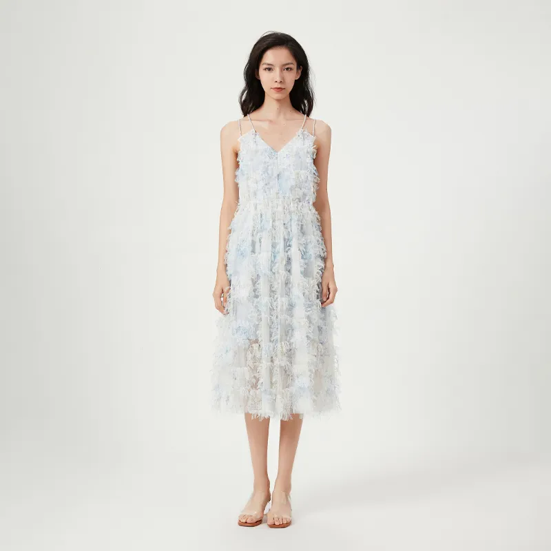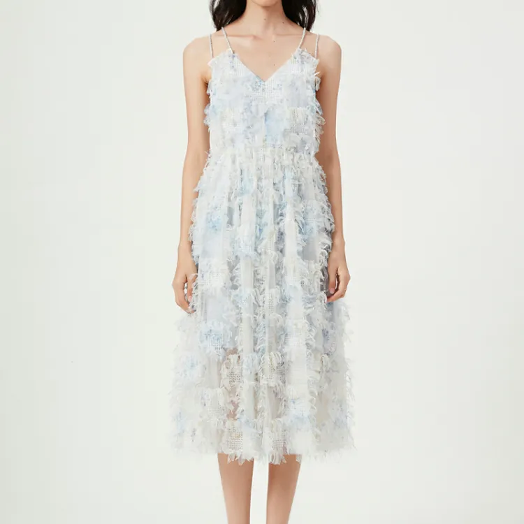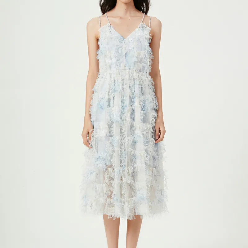 FLONAKED Slip Платье Женские 3D-эффект Клетка Бахрома