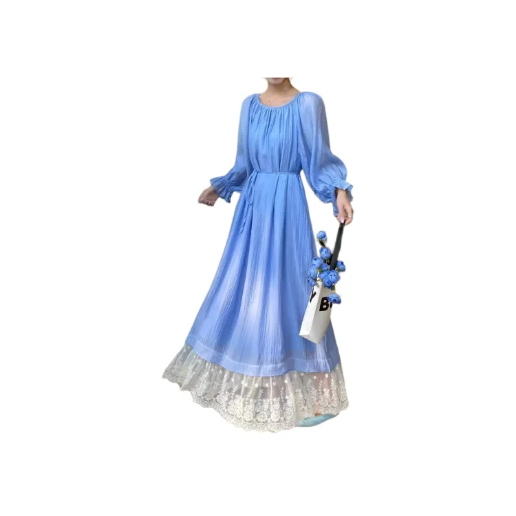 Flowers in water Длинное платье с длинными рукавами Женское
