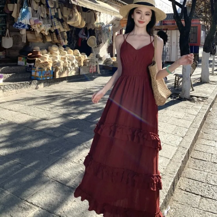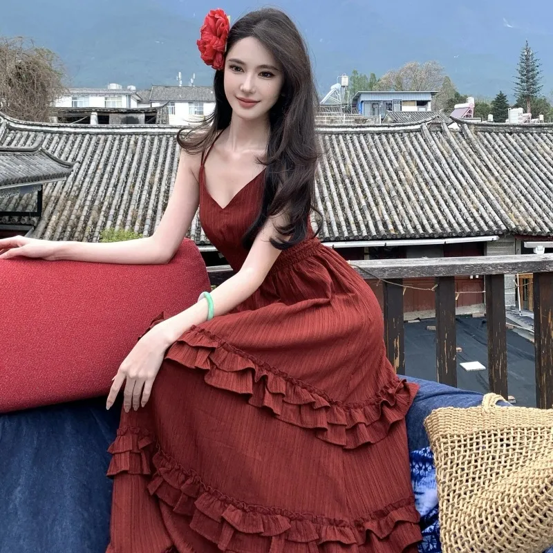 Flowers In Water Slip Платье Женское Красное