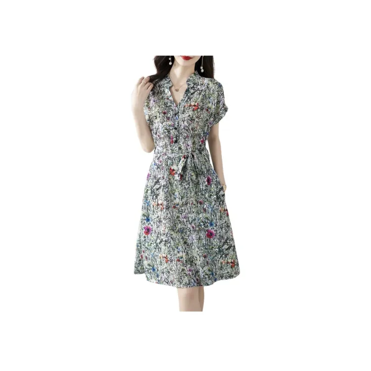 Flowers In Water Летний Короткий Рукав Платье Женское
