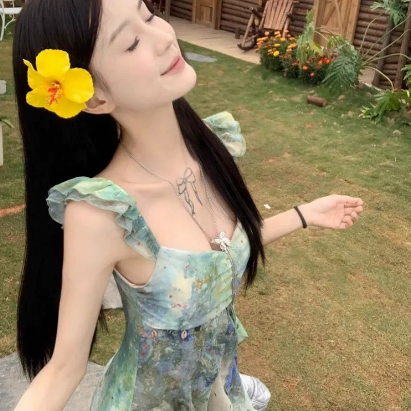 Flowers In Water Короткий рукав Платье Женское
