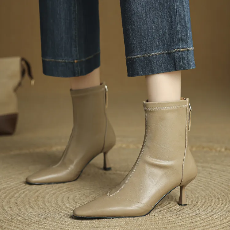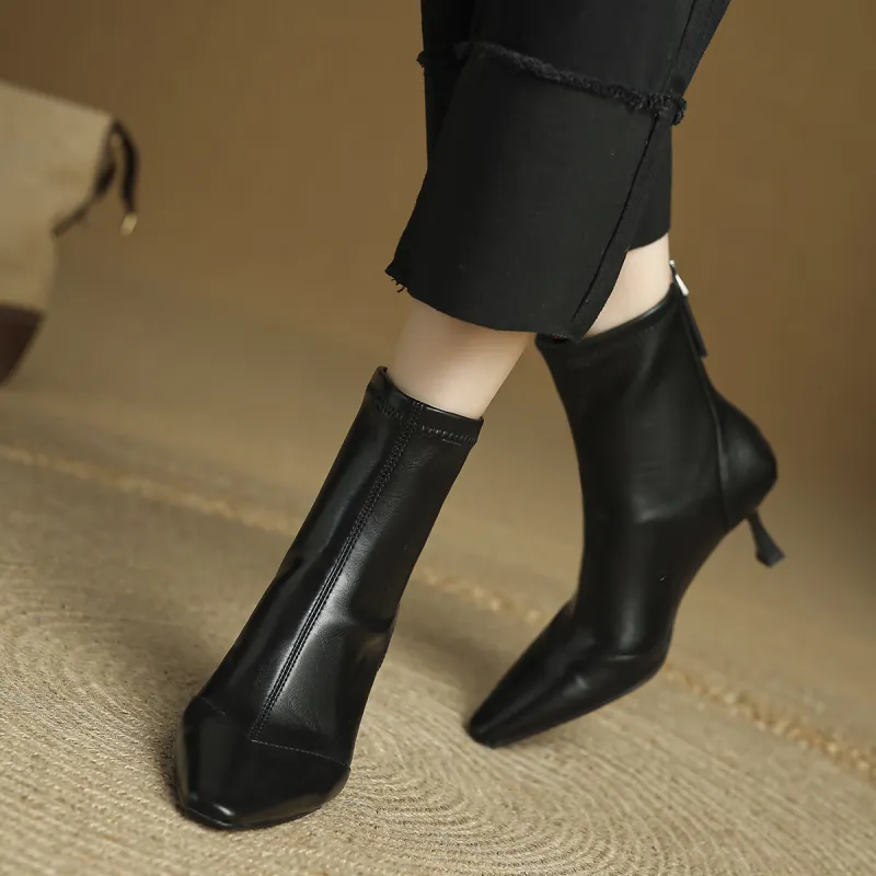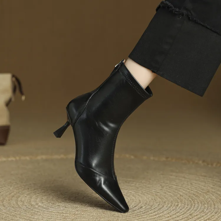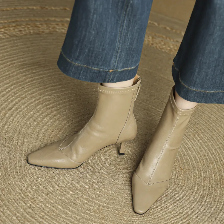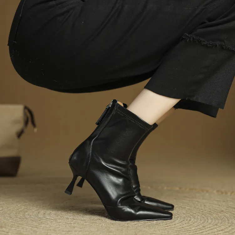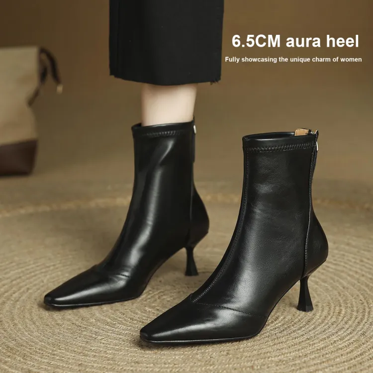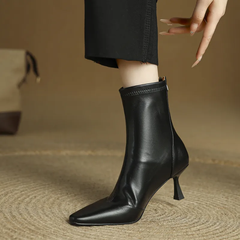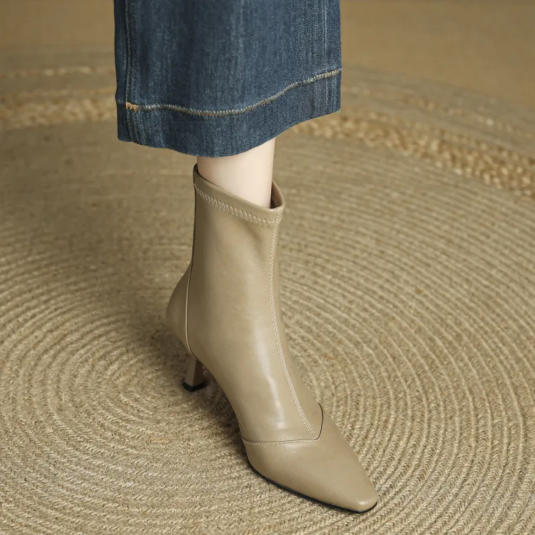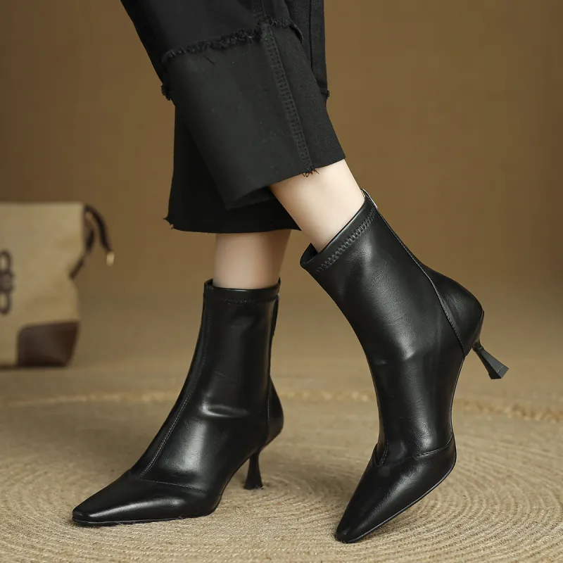 FMM 2025 Fall Winter Корейский стиль Высокий каблук Ботильоны для Женщин Эластичные Кожаные туфли Одиночные Женские ботинки