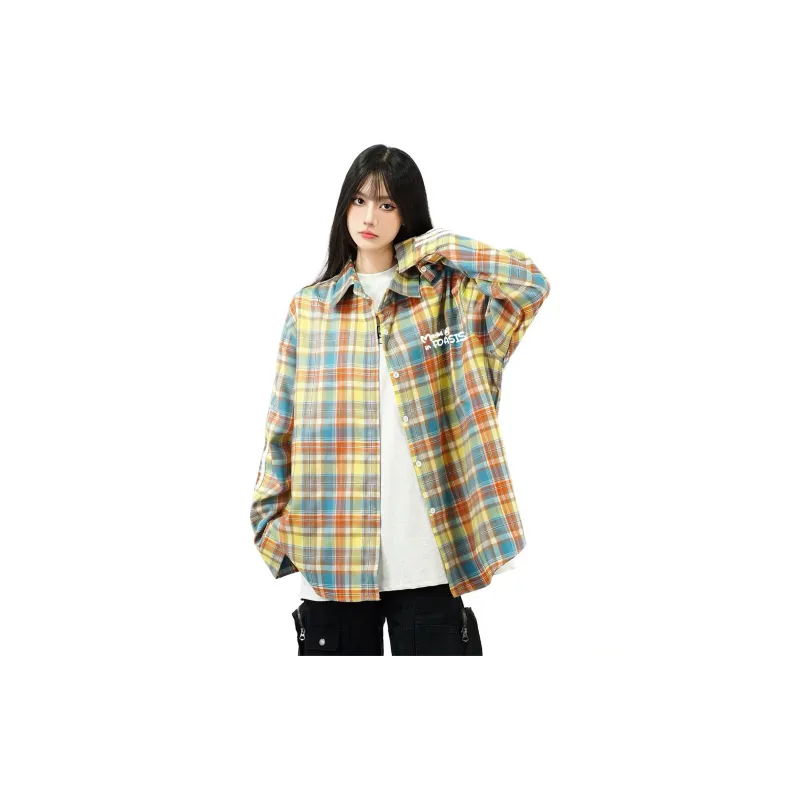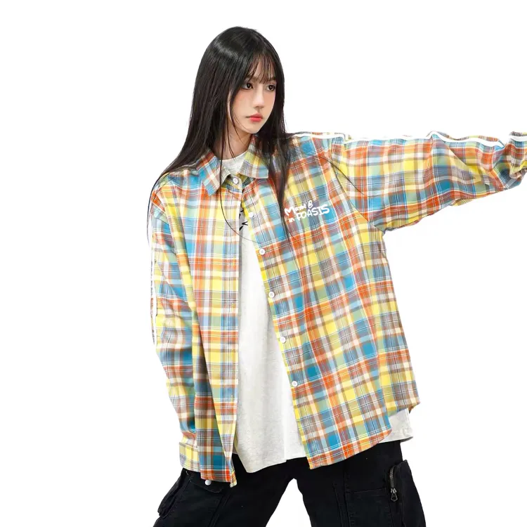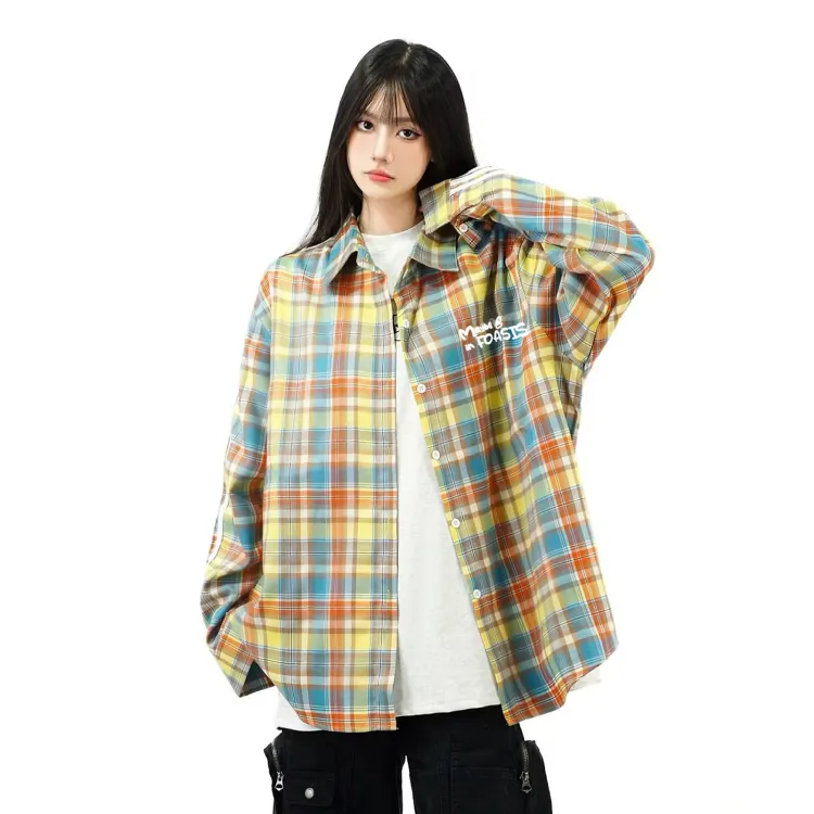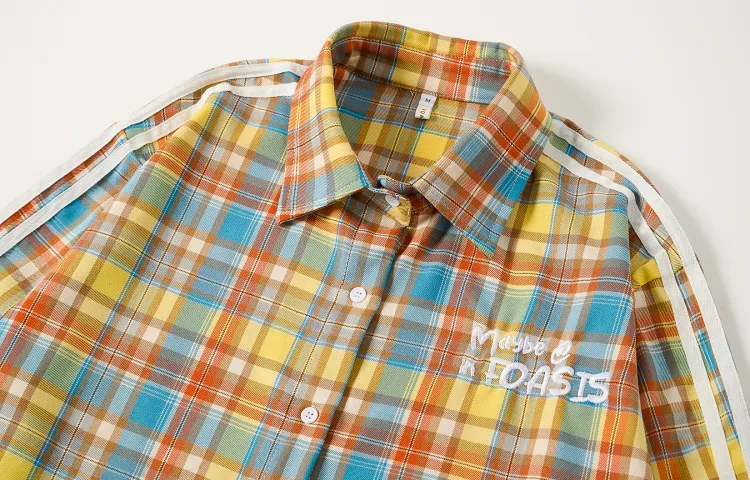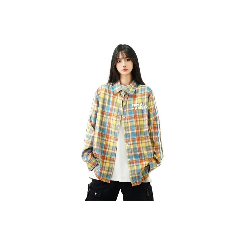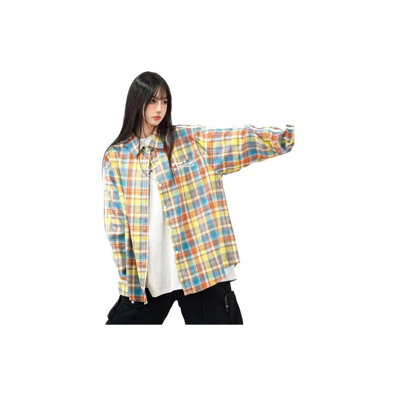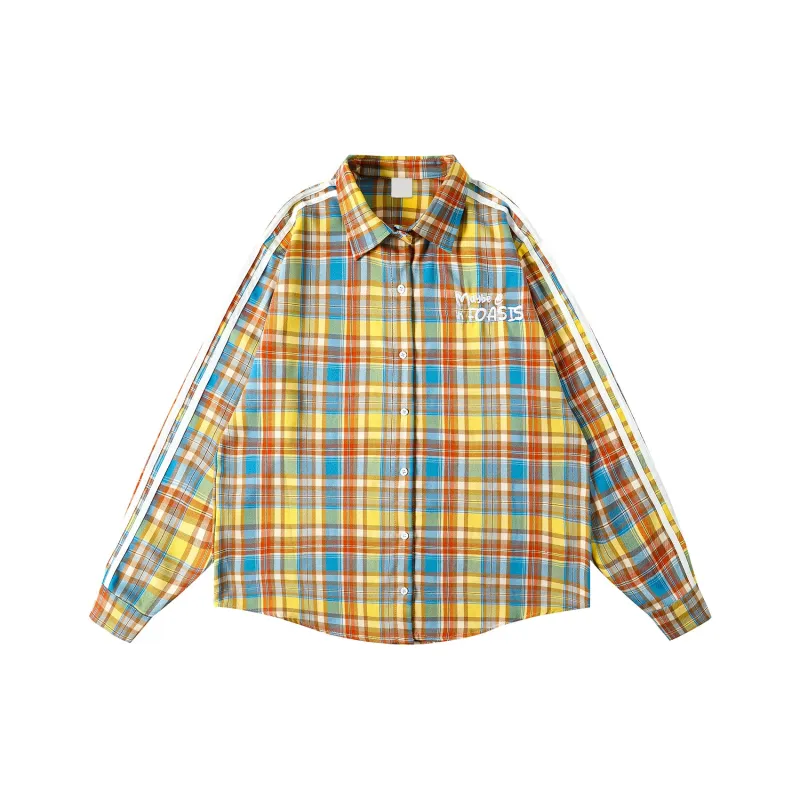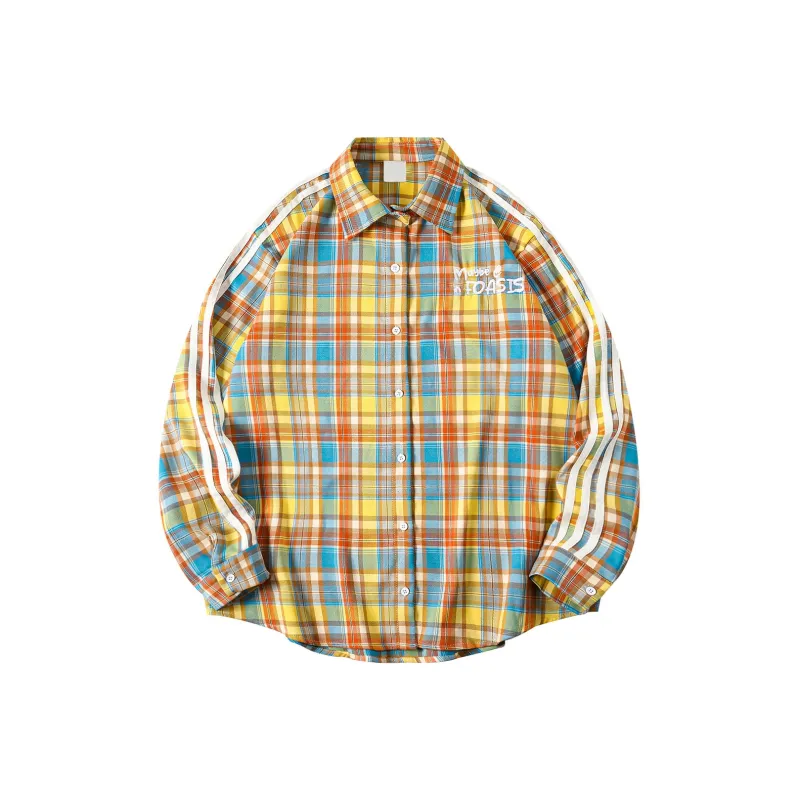 FOASIS Желтая клетка Длинный рукав Унисекс рубашки